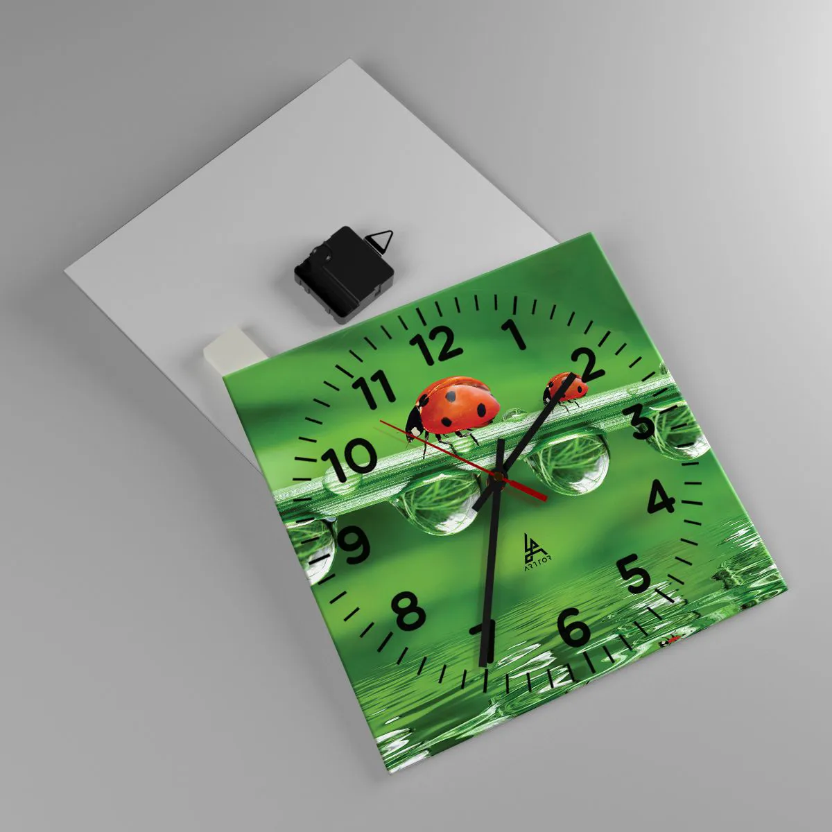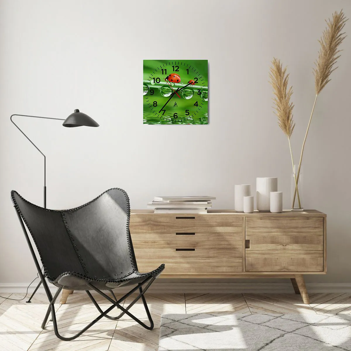 • Marienkäfer, Wassertropfen, Natur, Natur, Tiere, Für das Büro, für das Arbeitszimmer, für das Esszimmer, für den Flur, für das Wohnzimmer, für das Schlafzimmer, Rot grün, Quadrat