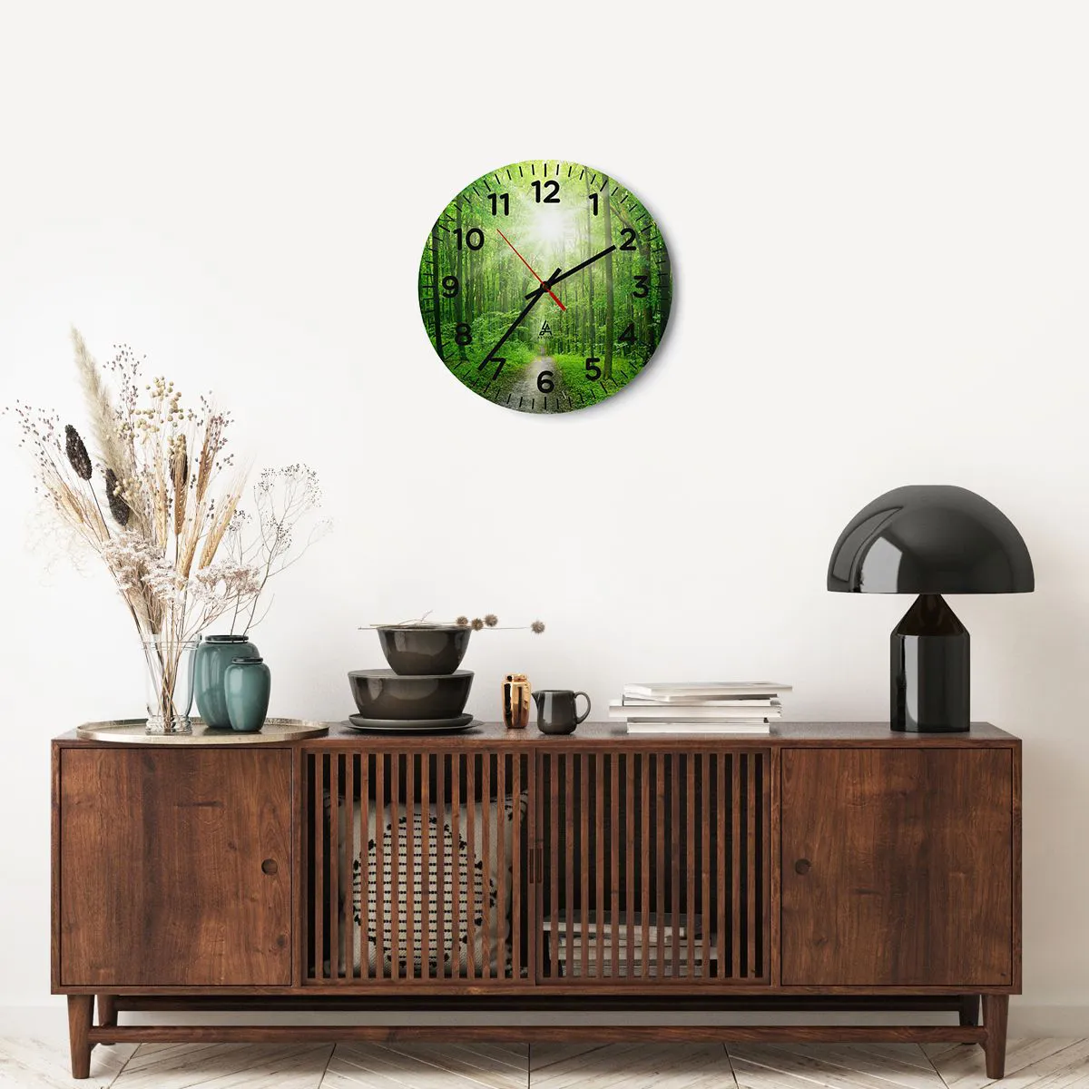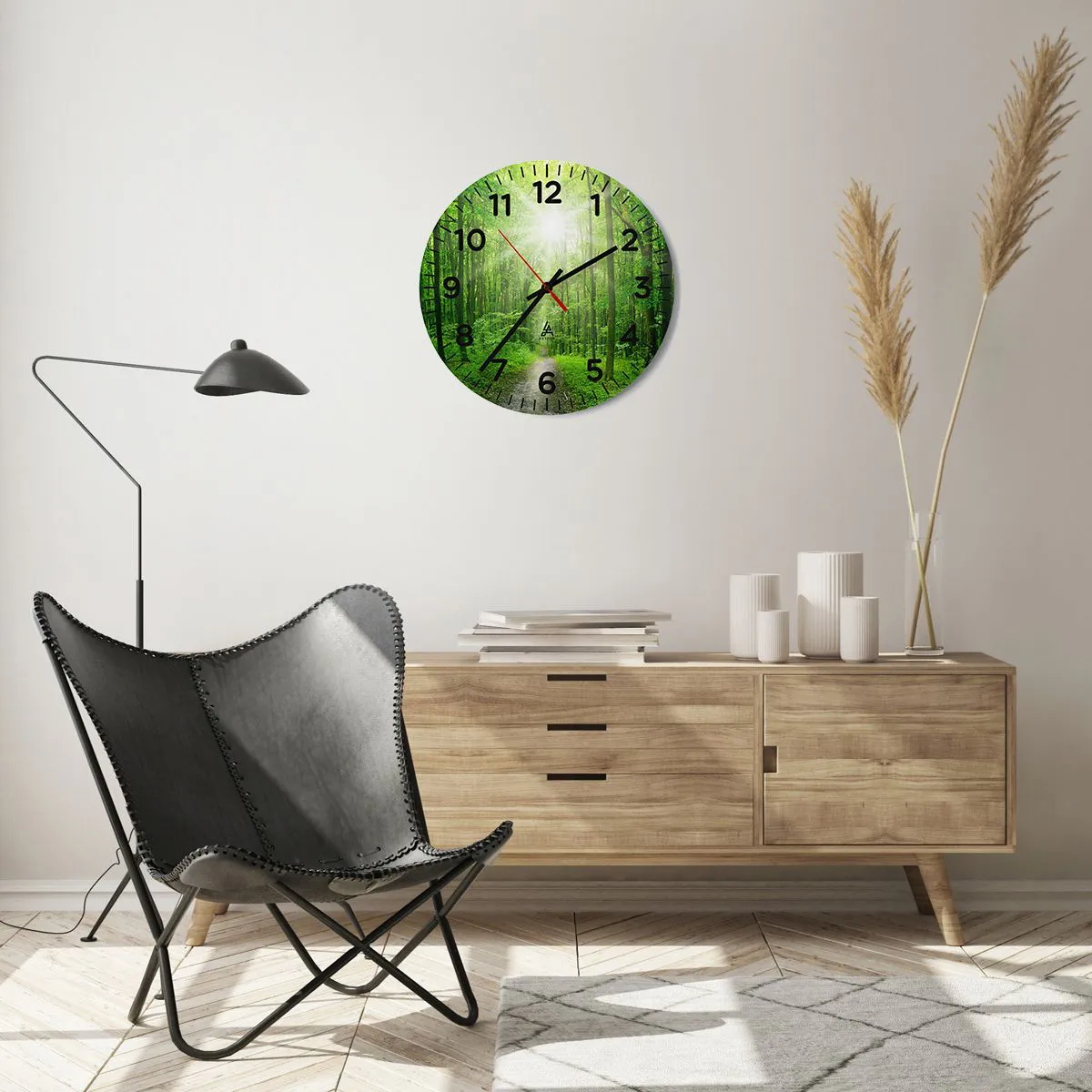 Die Uhr besteht aus robustem 4 mm dickem Glas. Glas bewahrt die natürlichen Farben des Drucks