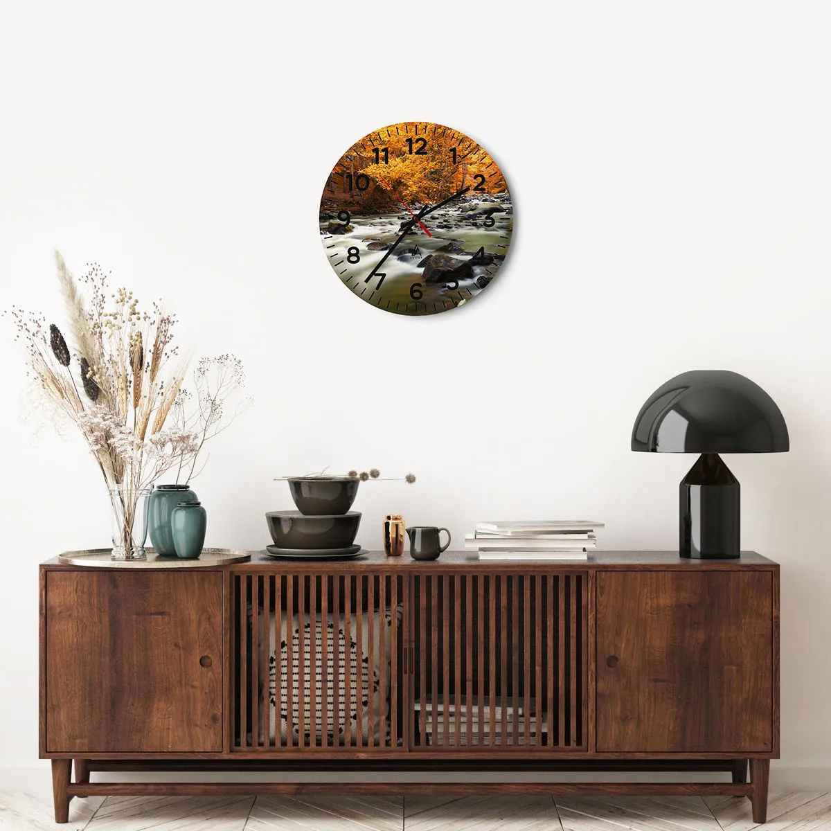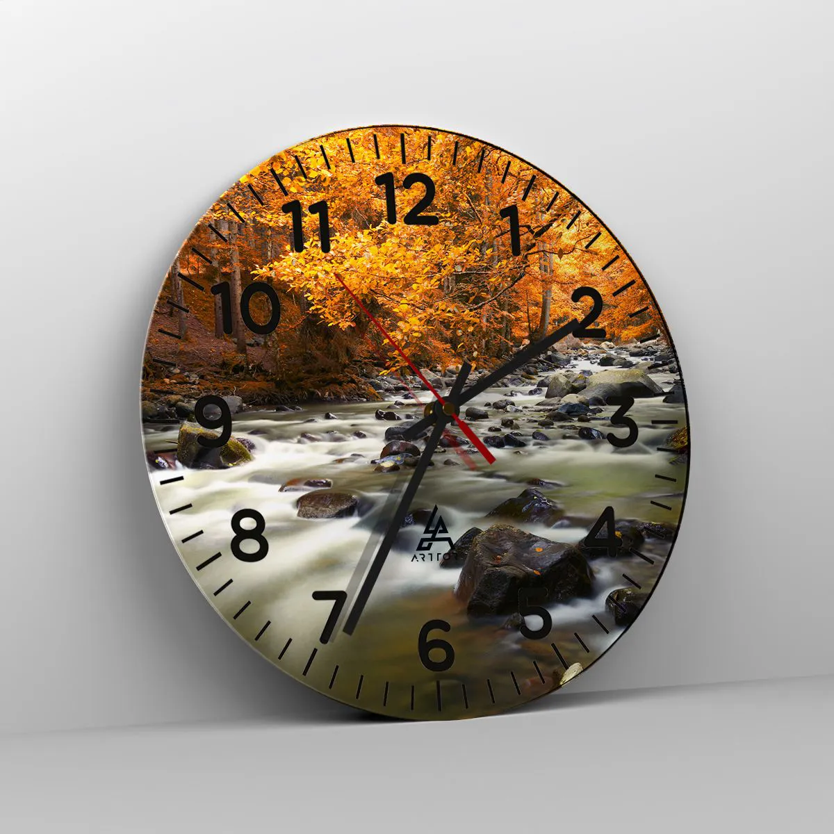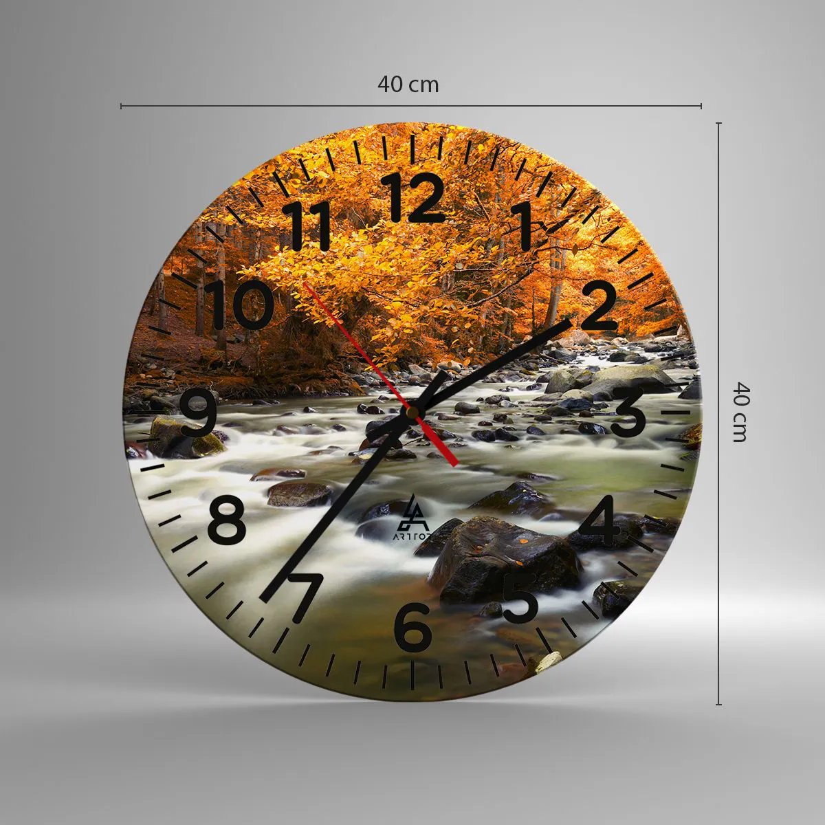 Wanduhr - Glasuhr - Ein Bach in einem goldenen Wald - 40x40 cm