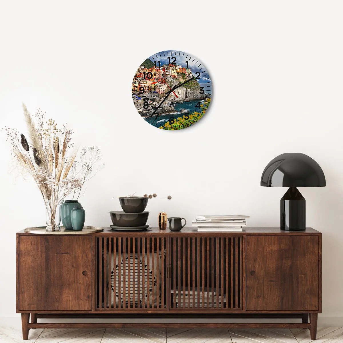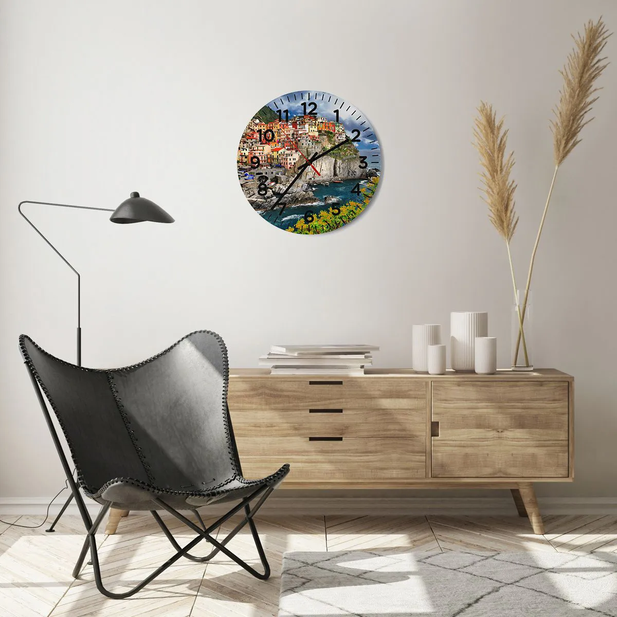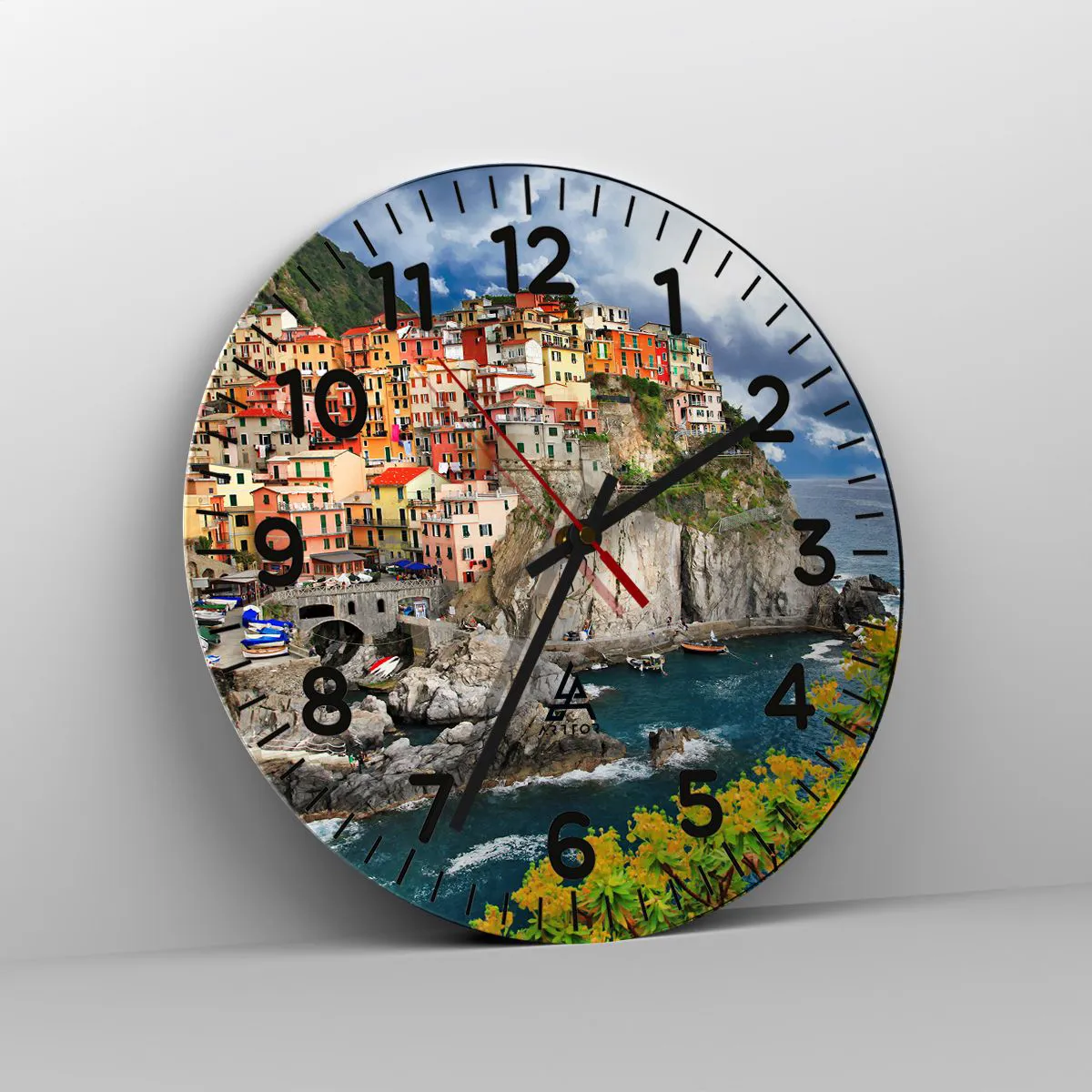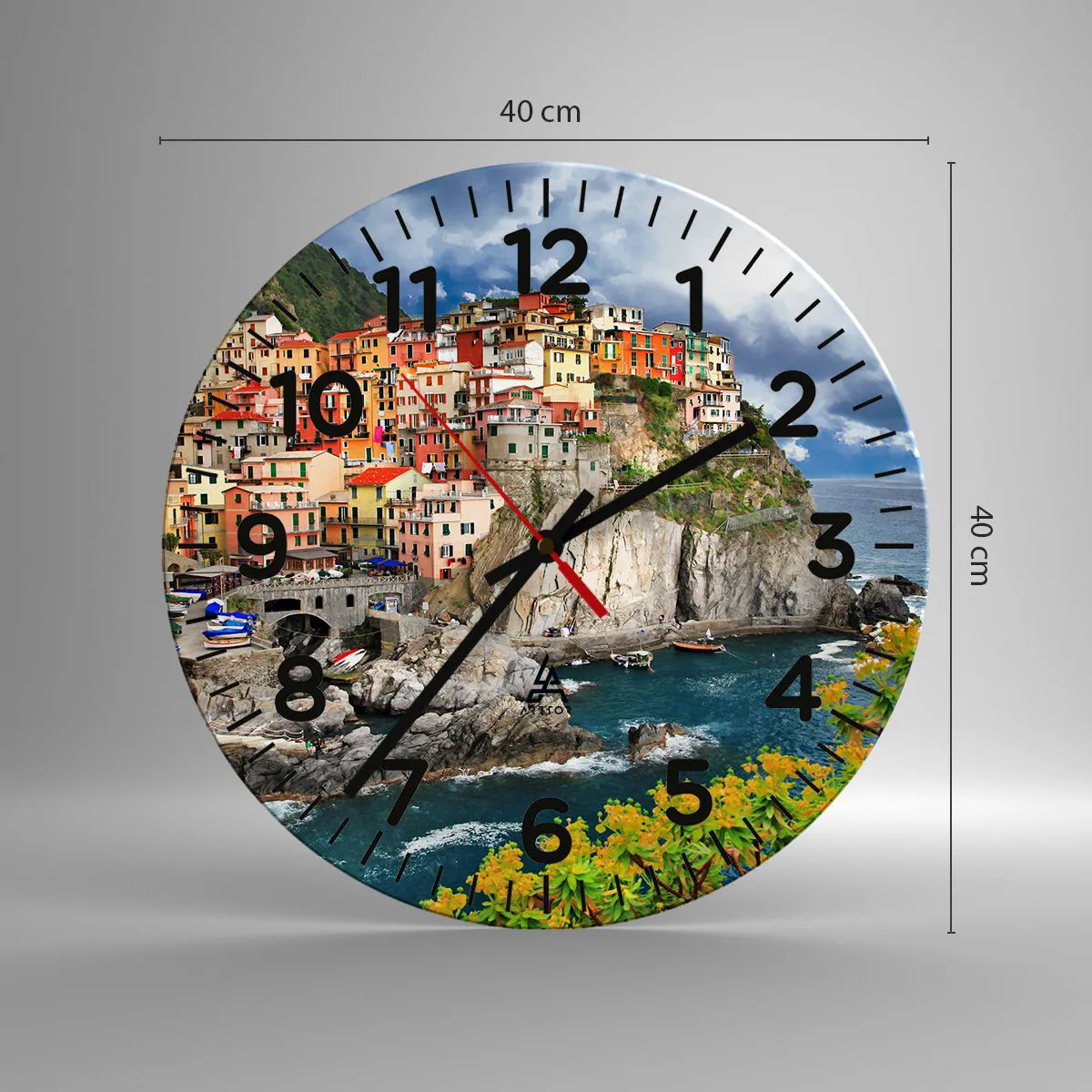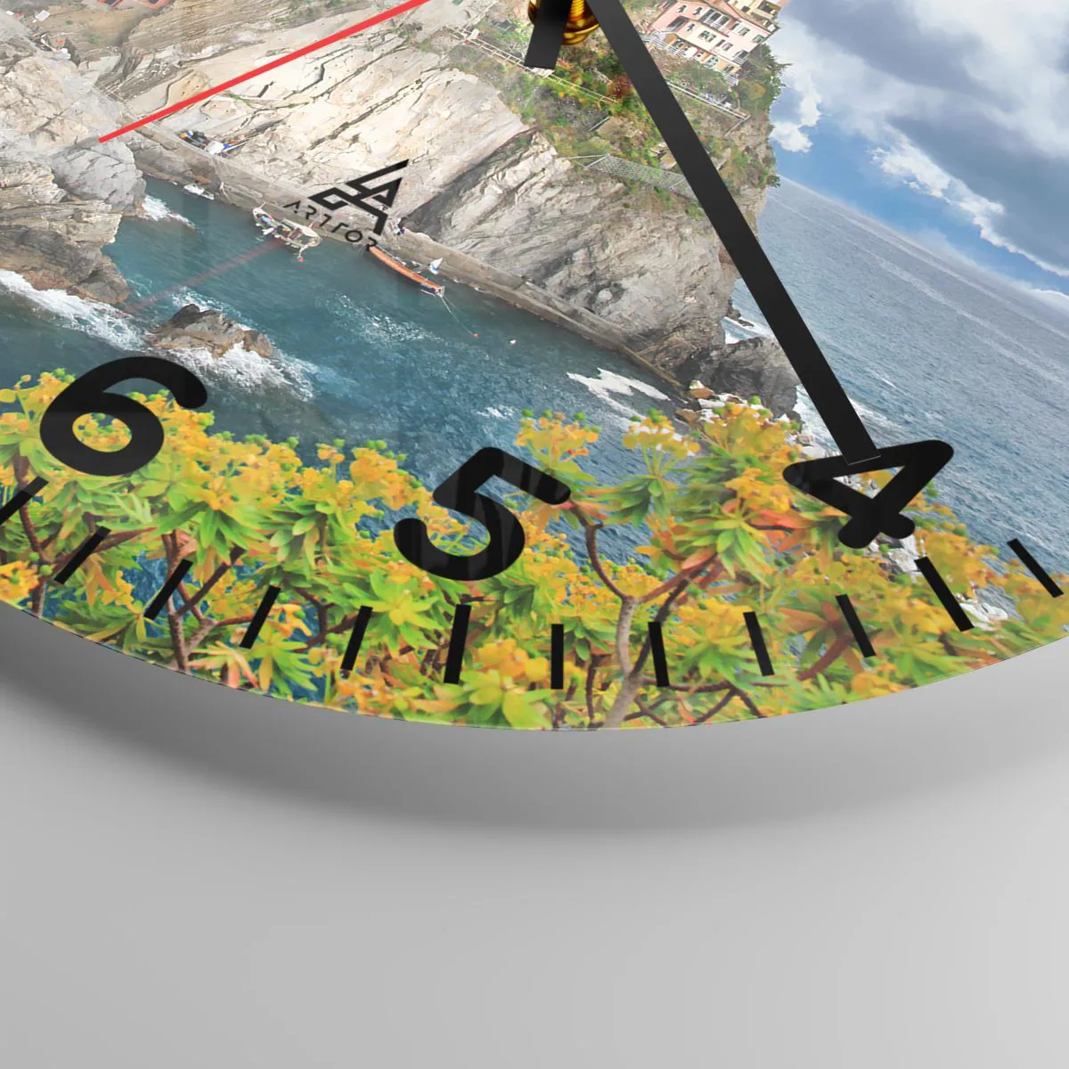 Die Uhr besteht aus robustem 4 mm dickem Glas. Glas bewahrt die natürlichen Farben des Drucks