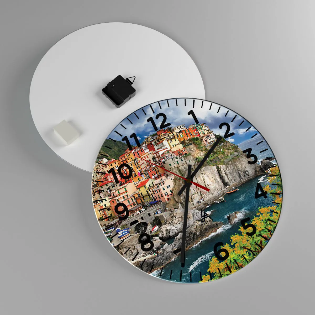 Die Uhr wird unter Verwendung moderner Drucktechnologien hergestellt, die die Erhaltung natürlicher Farben und eine hohe Farbsättigung garantieren. Die Herstellung von Uhren auf Glas erfolgt in mehreren Stufen. Hochwertiger Ausdruck und zwei Schutzschichten werden thermisch mit dem Glas verbunden. Dazu nutzen wir die innovative Technologie von Glaslaminieröfen in einer Vakuumumgebung.