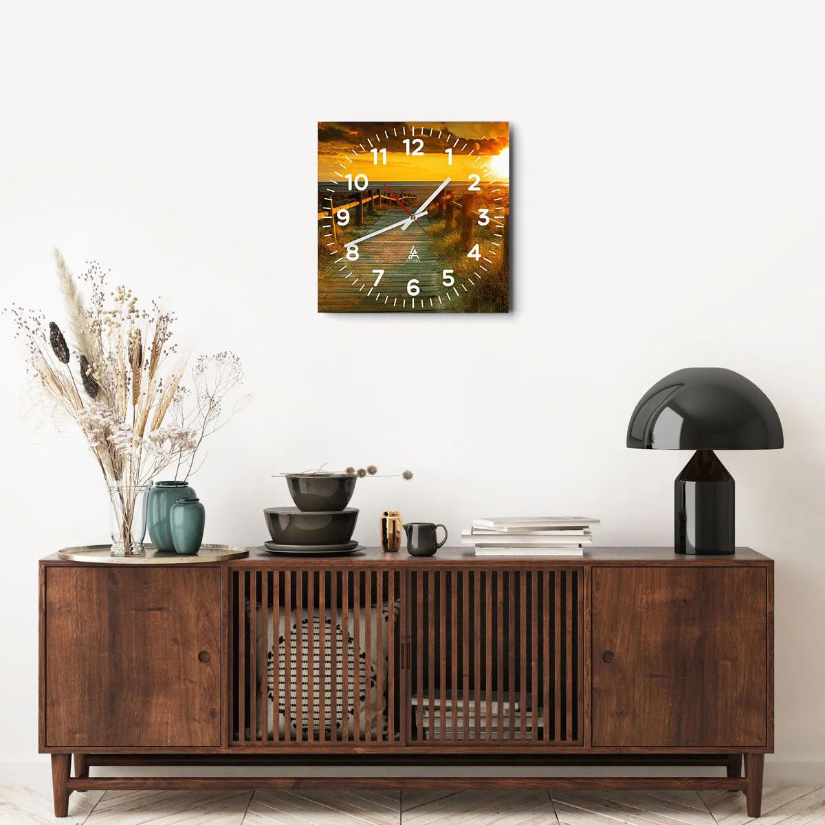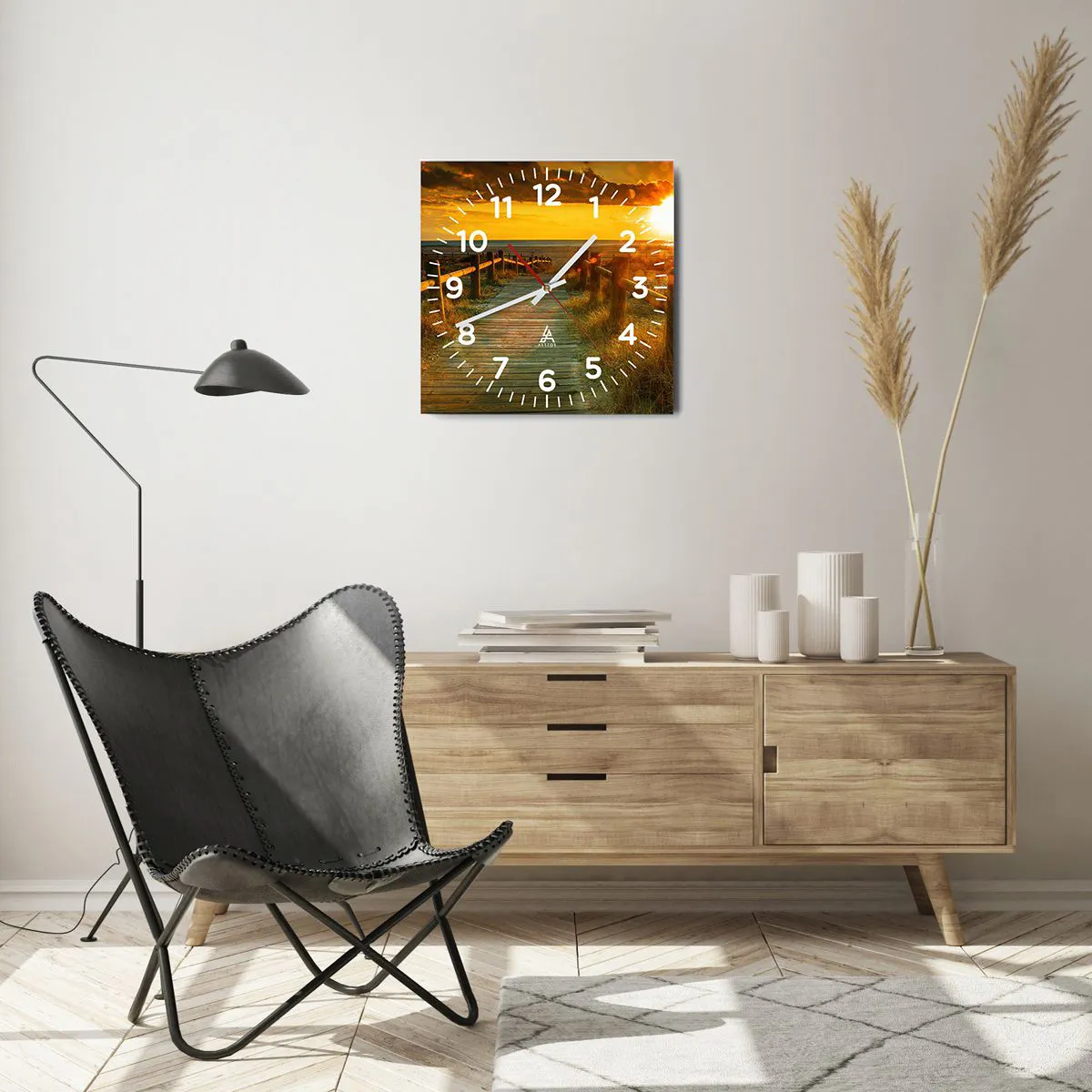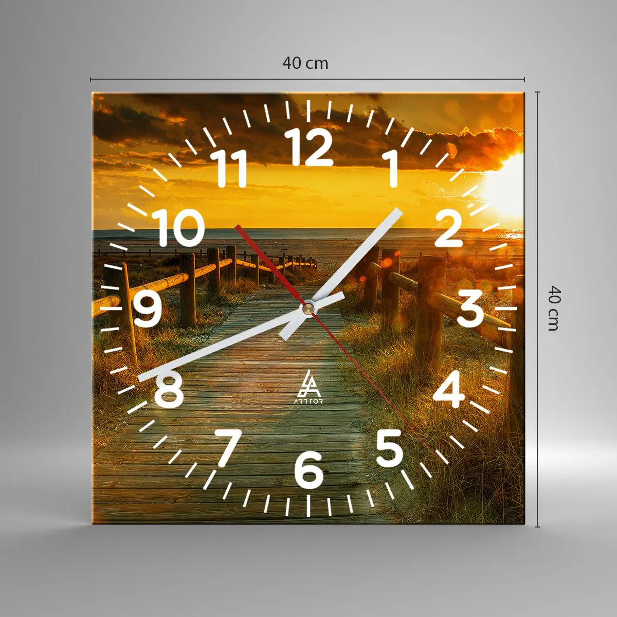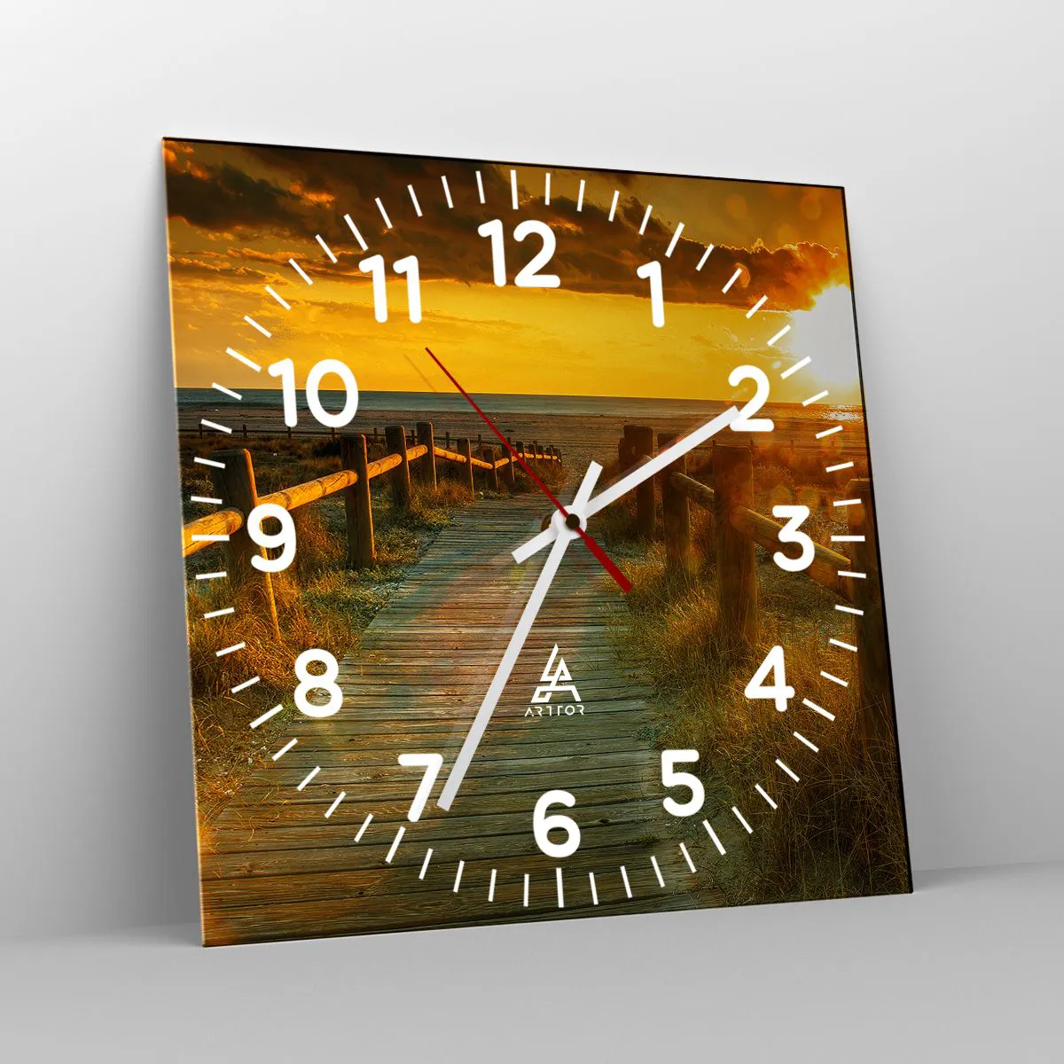 Die Uhr besteht aus robustem 4 mm dickem Glas. Glas bewahrt die natürlichen Farben des Drucks