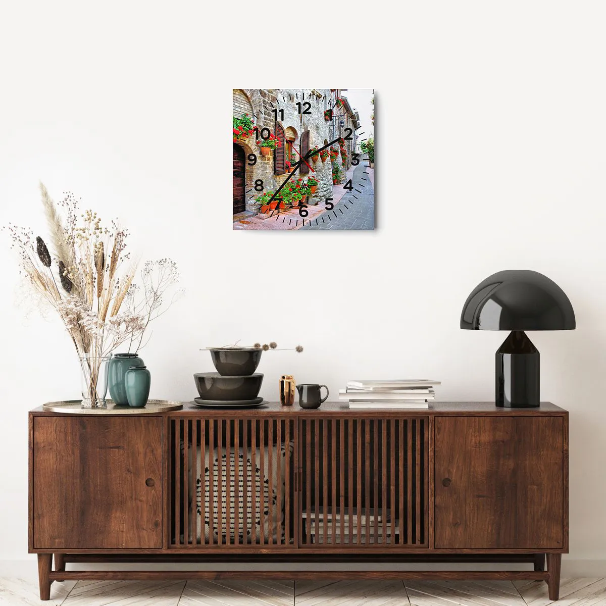 Wanduhr - Glasuhr - Italienische Atmosphäre - 40x40 cm
