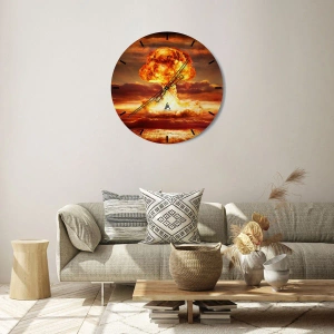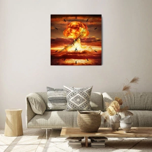Wanduhr - Glasuhr - Atompilz-Explosion vor dem Hintergrund eines Sonnenuntergangs - 30x30cm - Und das Ende wird kommen - Moderne Wanddekoration für Wohnzimmer und Schlafzimmer ARTTOR