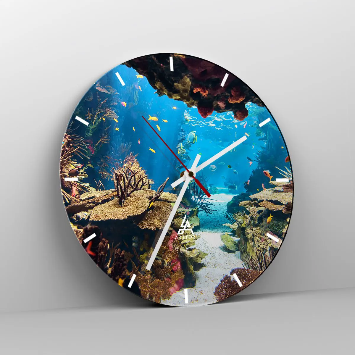 Die Uhr besteht aus robustem 4 mm dickem Glas. Glas bewahrt die natürlichen Farben des Drucks