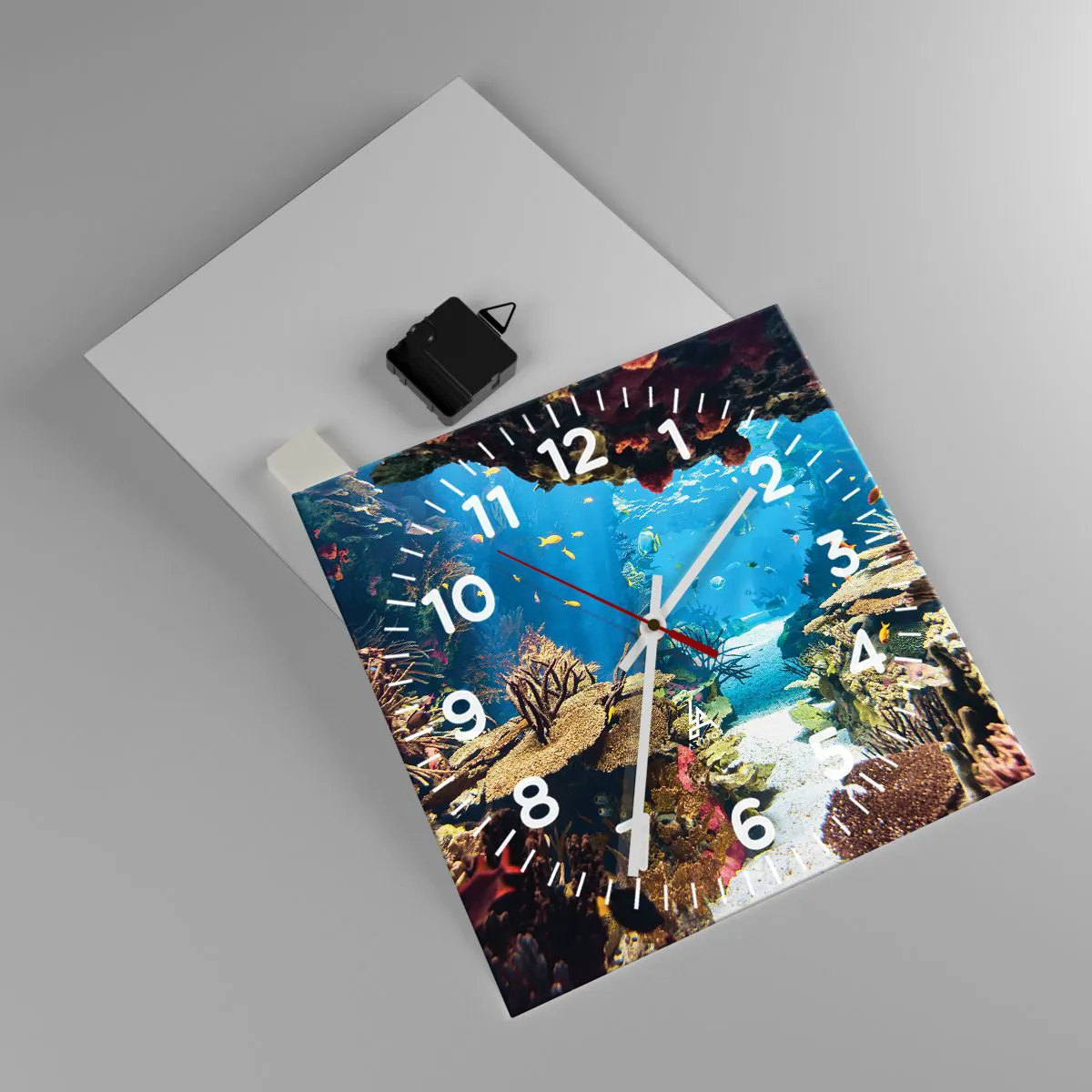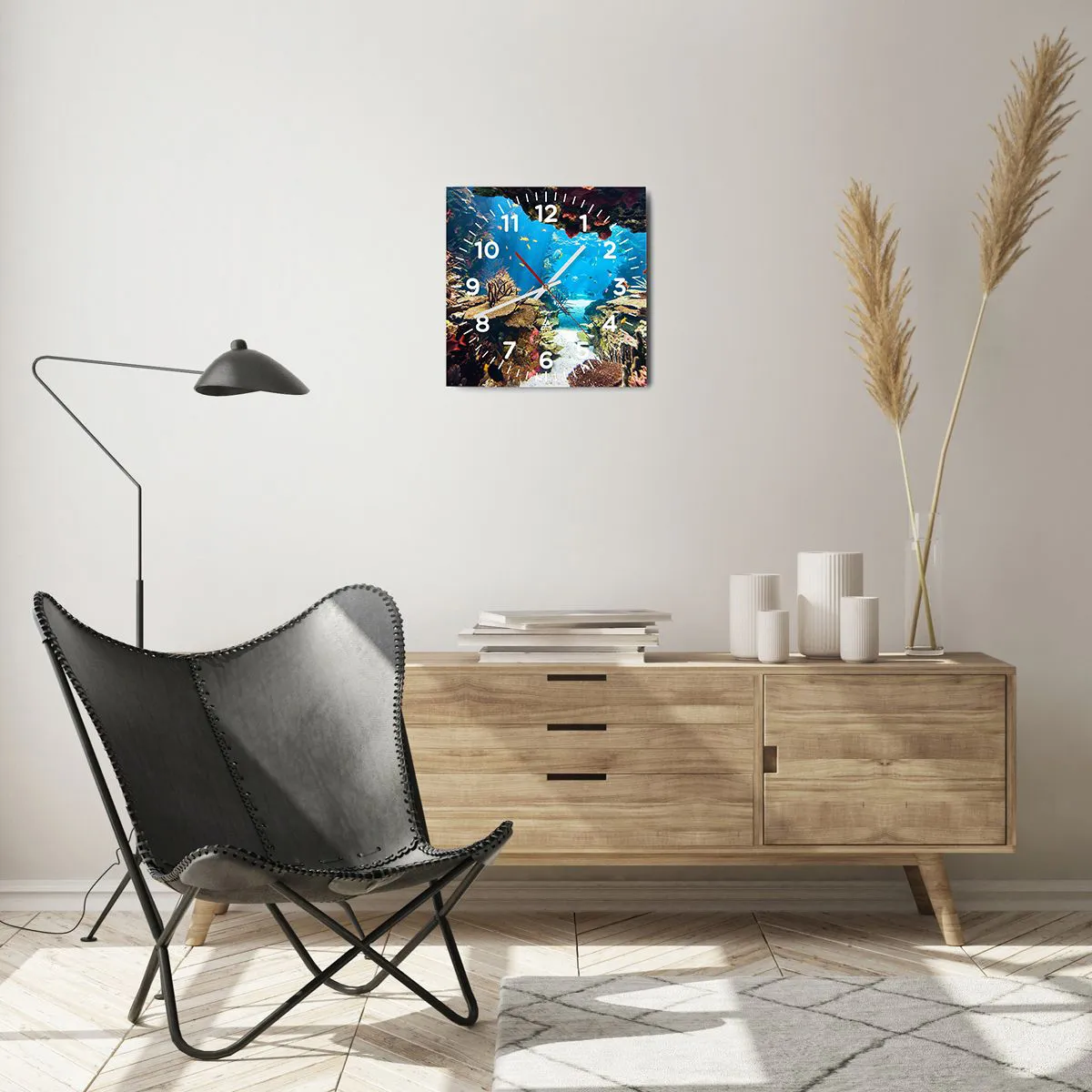 Die Uhr besteht aus robustem 4 mm dickem Glas. Glas bewahrt die natürlichen Farben des Drucks