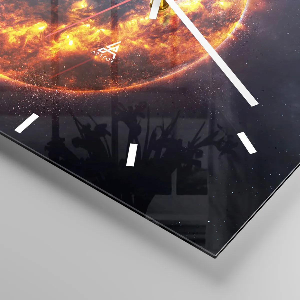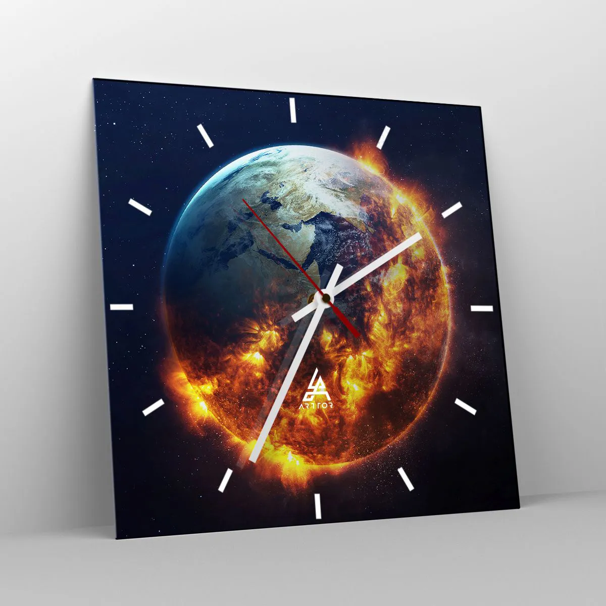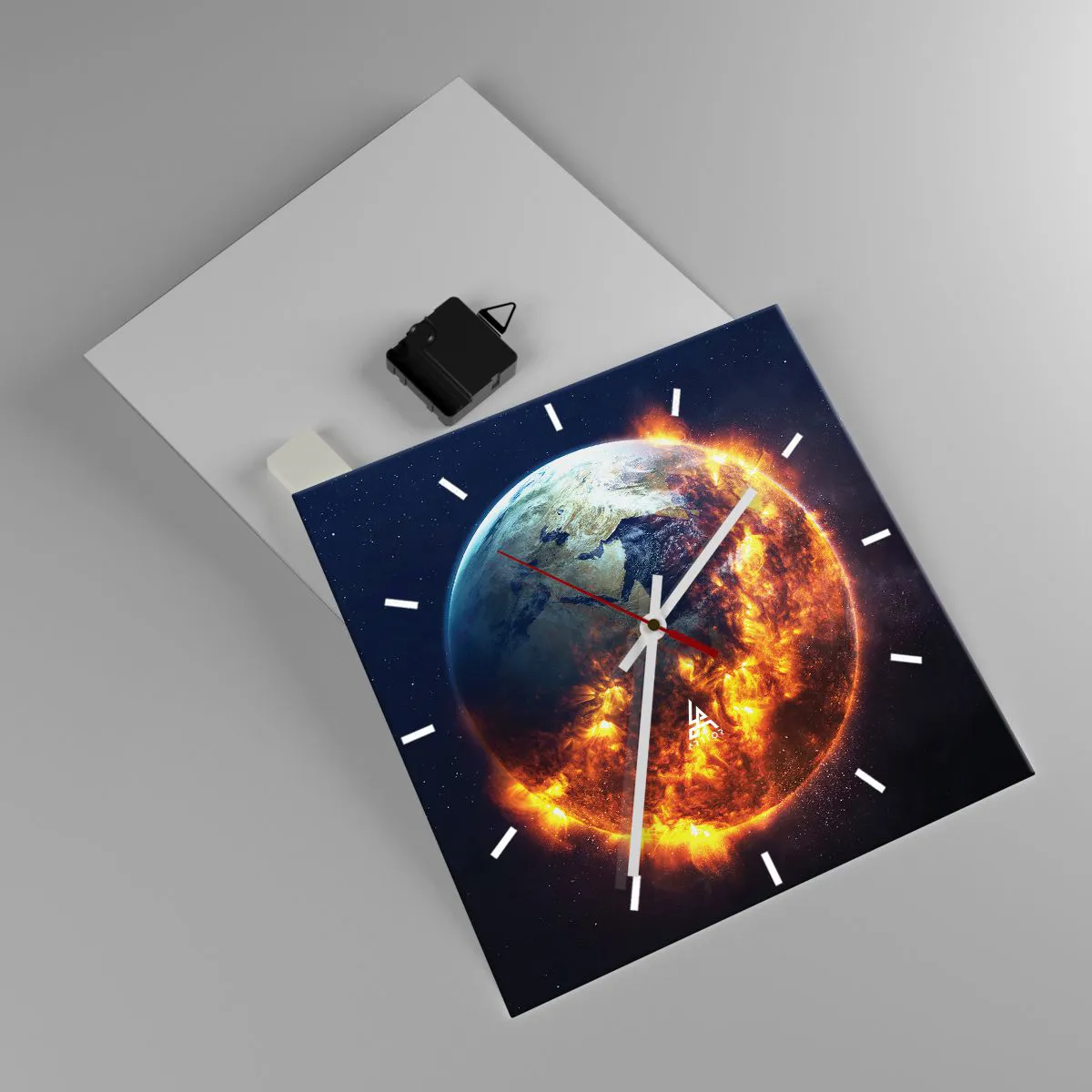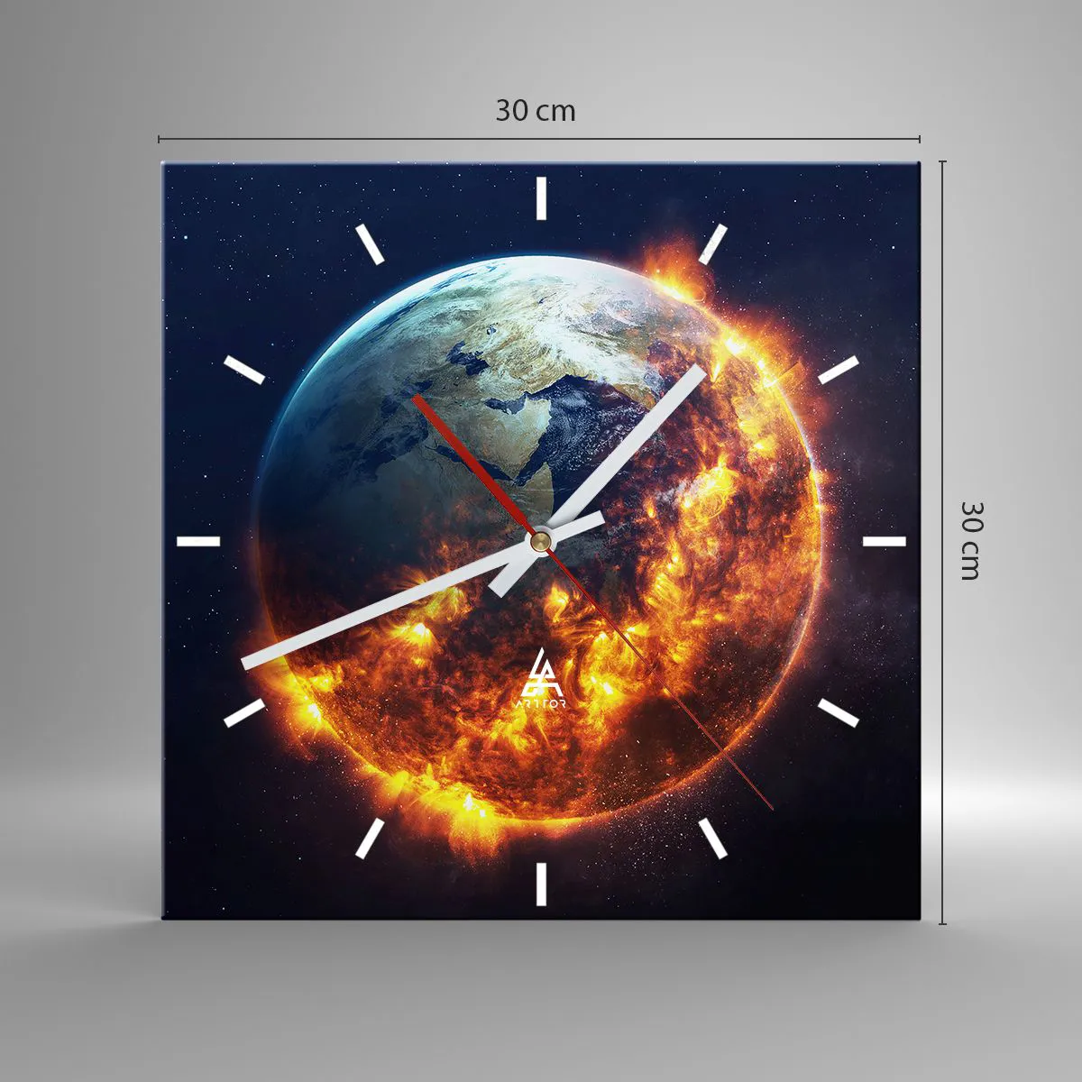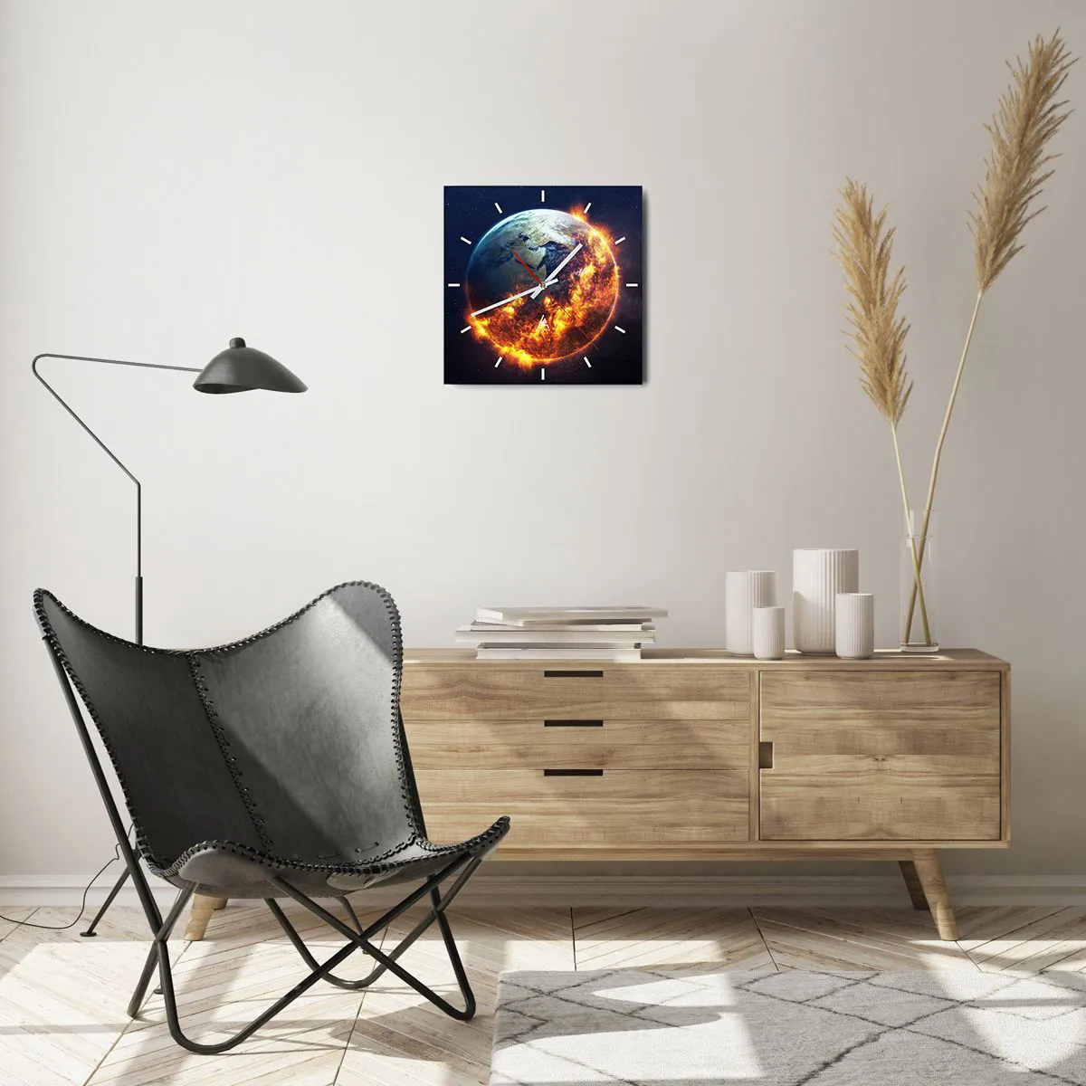 Wanduhr - Glasuhr - Der Planet Erde brennt im Weltraum - 30x30cm - Die Flamme der Apokalypse - Moderne Wanddekoration für Wohnzimmer und Schlafzimmer ARTTOR