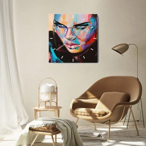 - Diese Uhr zeigt ein intensives, abstraktes Frauenporträt in lebendigen, farbenfrohen Farbtönen. Perfekt für moderne und künstlerische Innenräume.