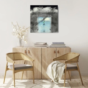 Die Uhr besteht aus 4 mm dickem Sicherheitsglas Glas. Die Herstellungstechnologie der Uhr entspricht der Sicherheitsklasse 2B2 gemäß der Norm PN-EN 12600: 2004, die Stoßfestigkeit garantiert. Die Uhr auf dem Glas ist bereit zu hängen - es hat einen Metallanhänger, einen Anhänger auf der Rückseite der Uhr und einen Schaumstoffabstand, der einen gleichmäßigen Abstand zwischen der Uhr und der Wand reguliert. Die Uhr hat einen geräuschlosen Schwimmmechanismus, der von einer 1,5-V-Batterie betrieben wird - AA-Batterie inbegriffen).