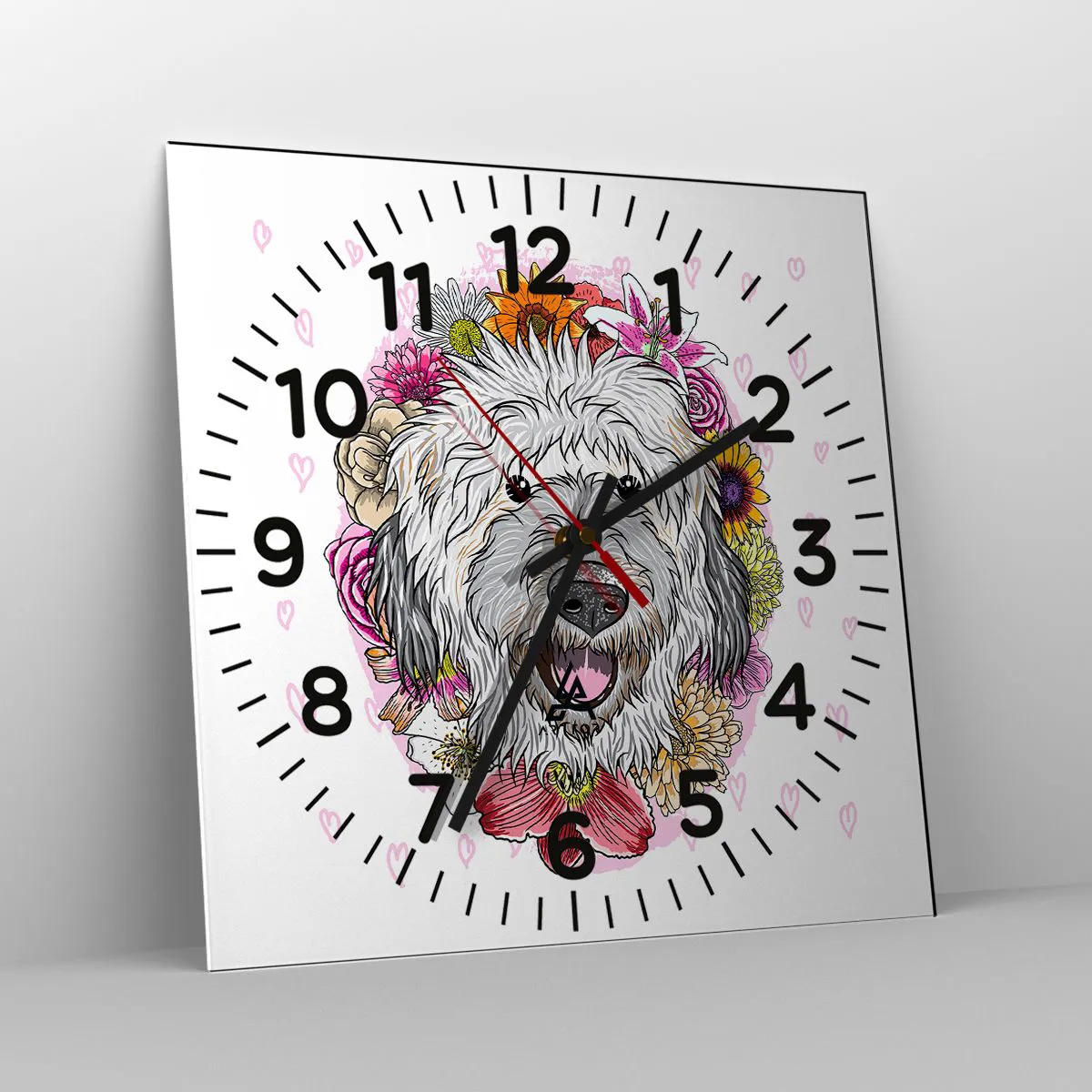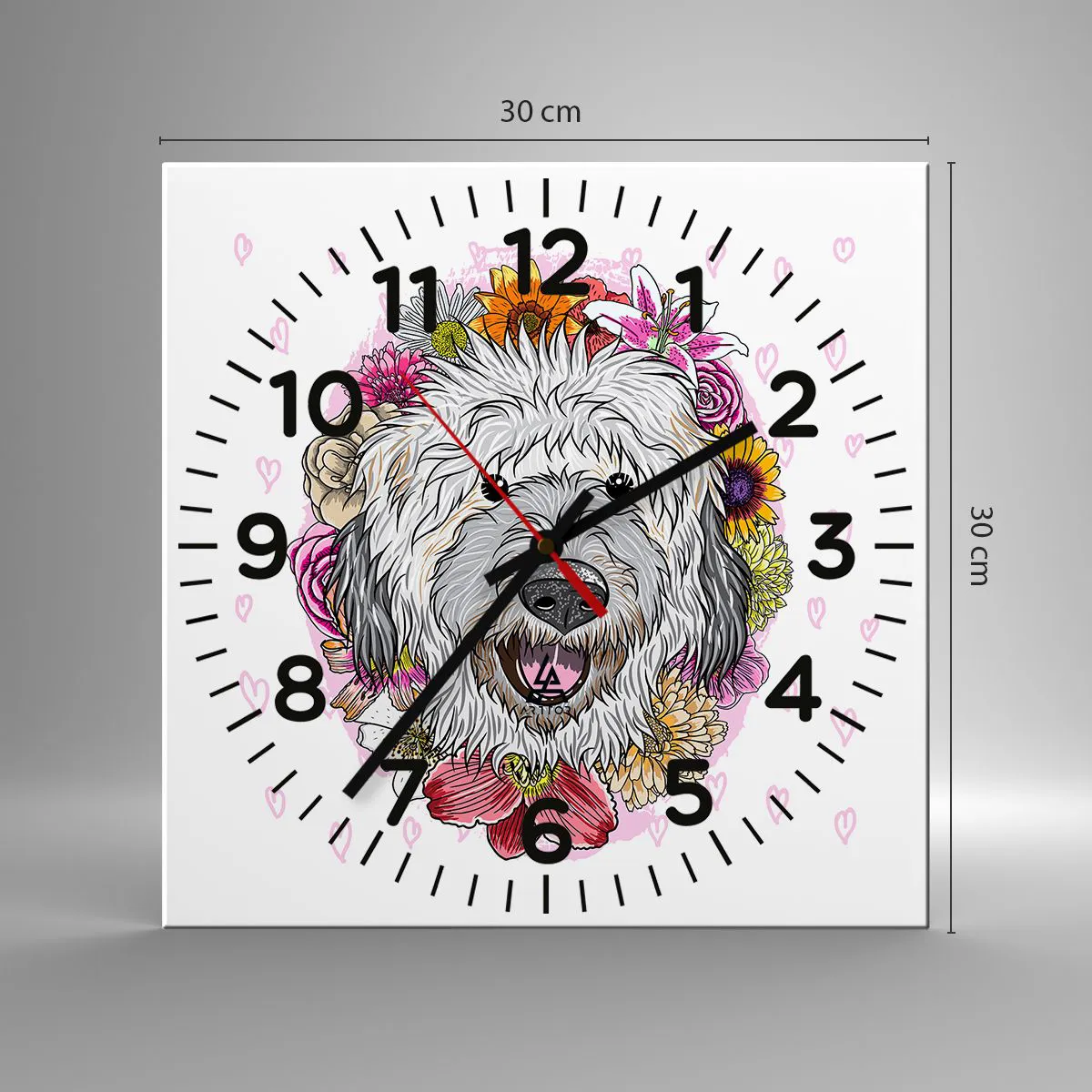 Wanduhr - Glasuhr - Welpenfreude - 30x30 cm