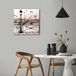Wanduhr - Glasuhr - Pariser Ansicht mit einer Laterne und einer Brücke - 30x30cm - Über den Dächern von Paris - Moderne Wanddekoration für Wohnzimmer und Schlafzimmer ARTTOR