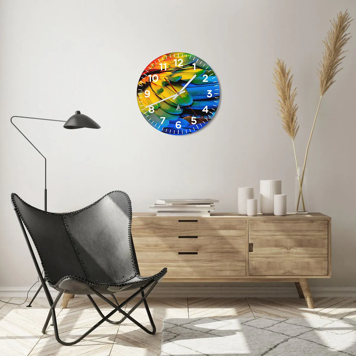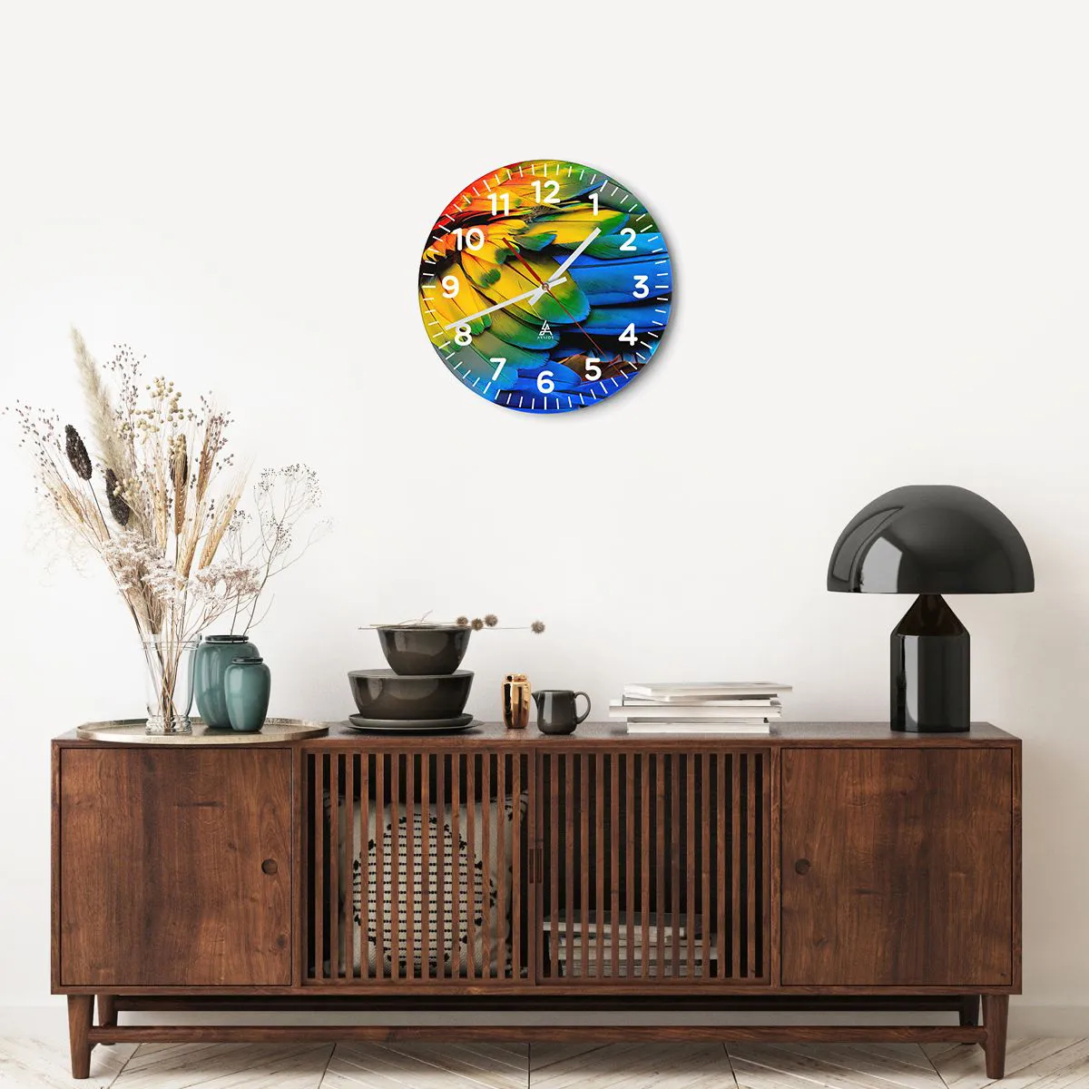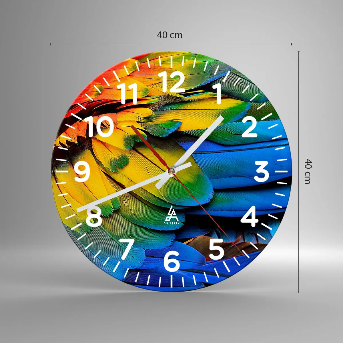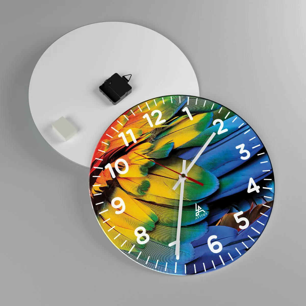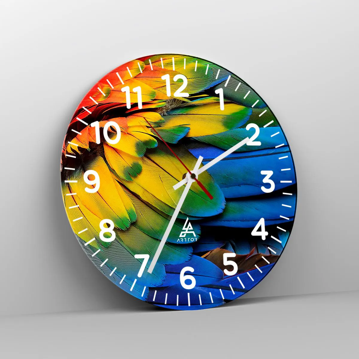 Die Uhr besteht aus robustem 4 mm dickem Glas. Glas bewahrt die natürlichen Farben des Drucks