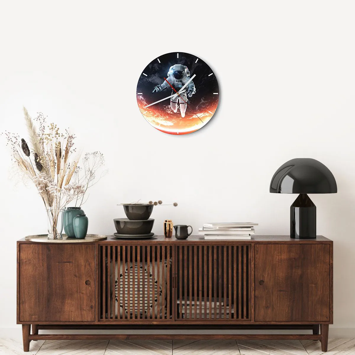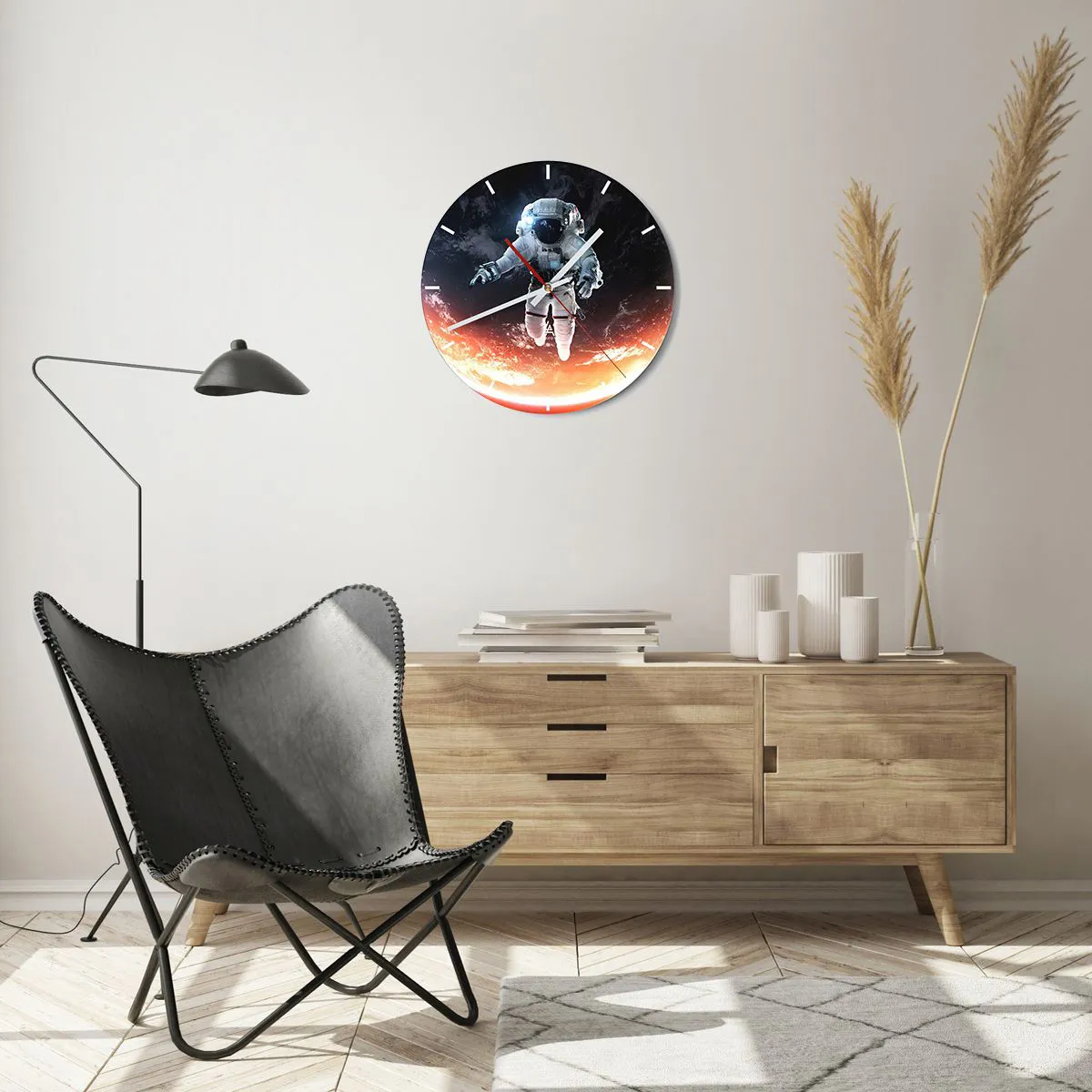 Die Uhr besteht aus robustem 4 mm dickem Glas. Glas bewahrt die natürlichen Farben des Drucks