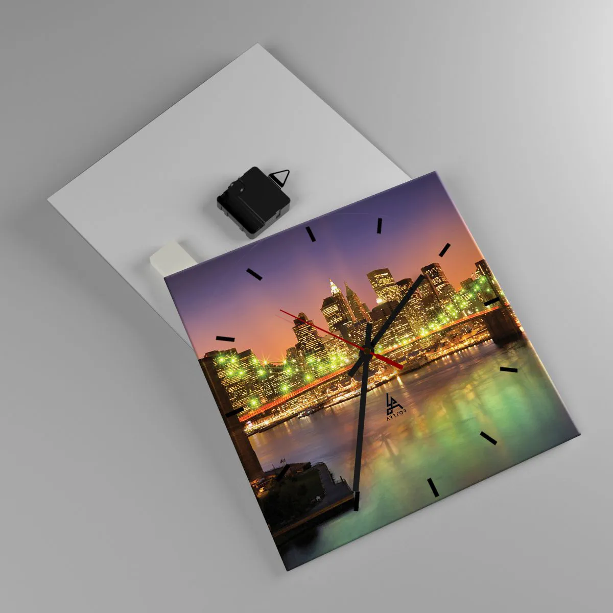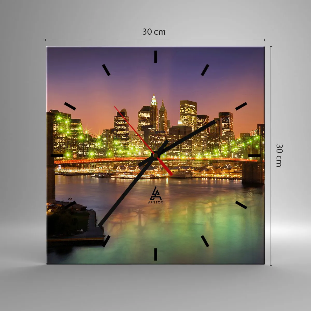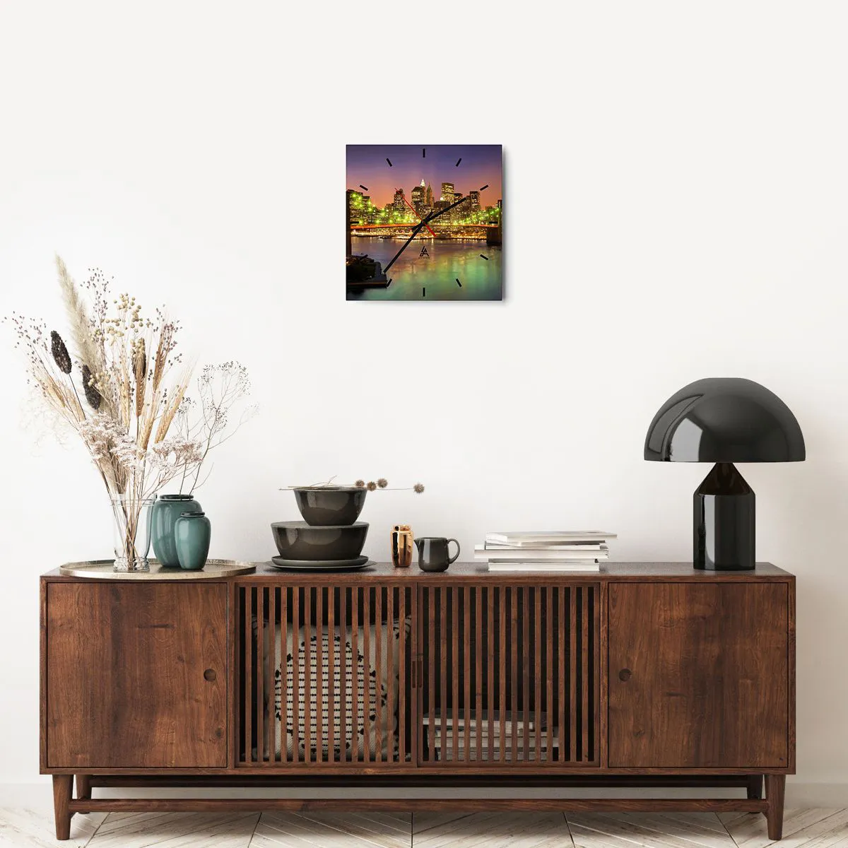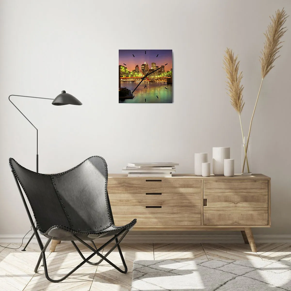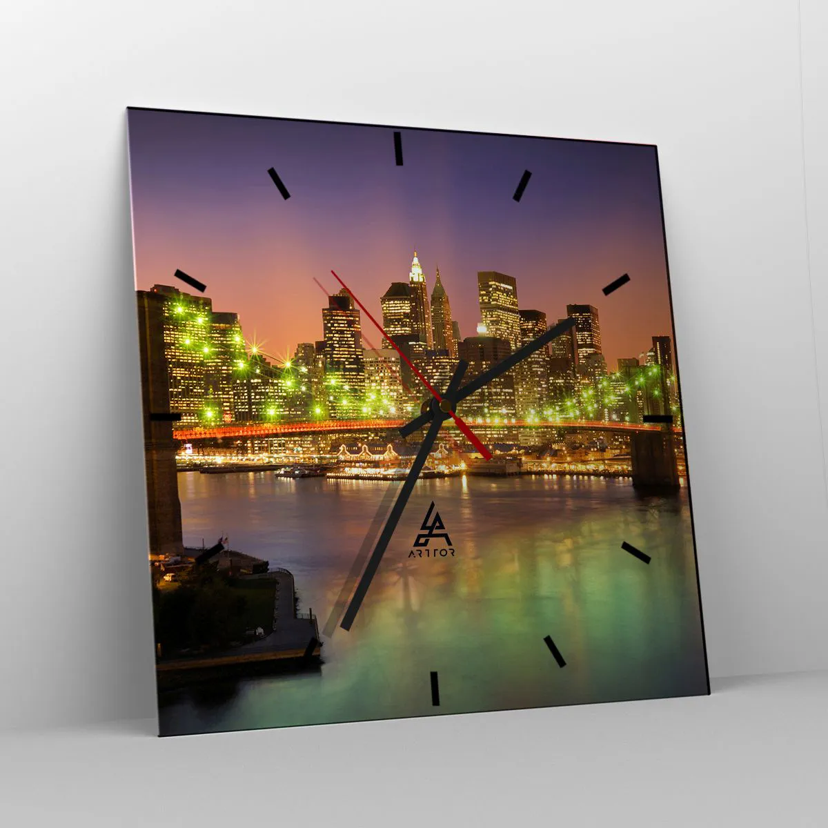 Wanduhr - Glasuhr - Beleuchtete Brücke in einer modernen Stadt bei Nacht - 30x30cm - Hier geht das Licht nie aus - Moderne Wanddekoration für Wohnzimmer und Schlafzimmer ARTTOR