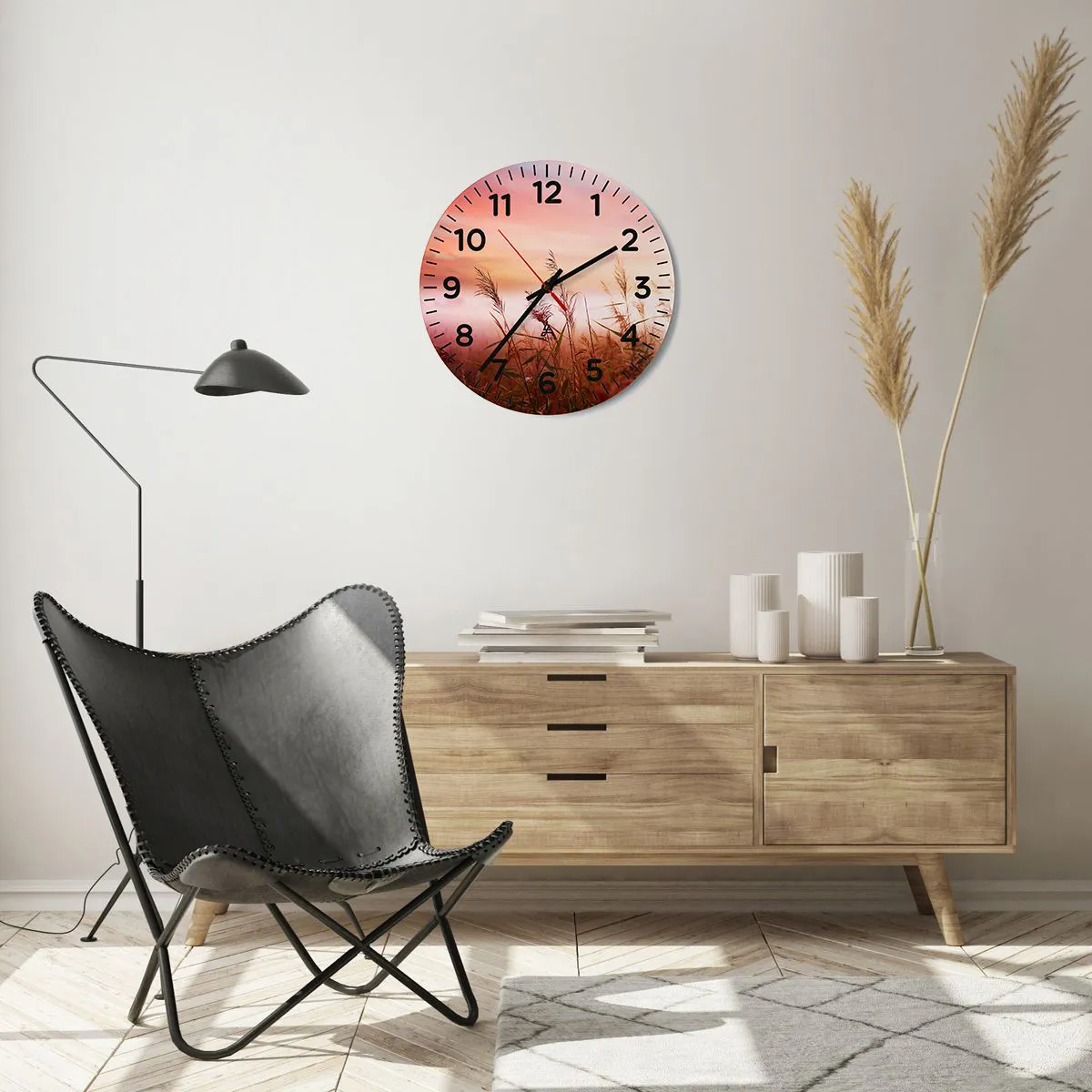 Die Uhr besteht aus robustem 4 mm dickem Glas. Glas bewahrt die natürlichen Farben des Drucks