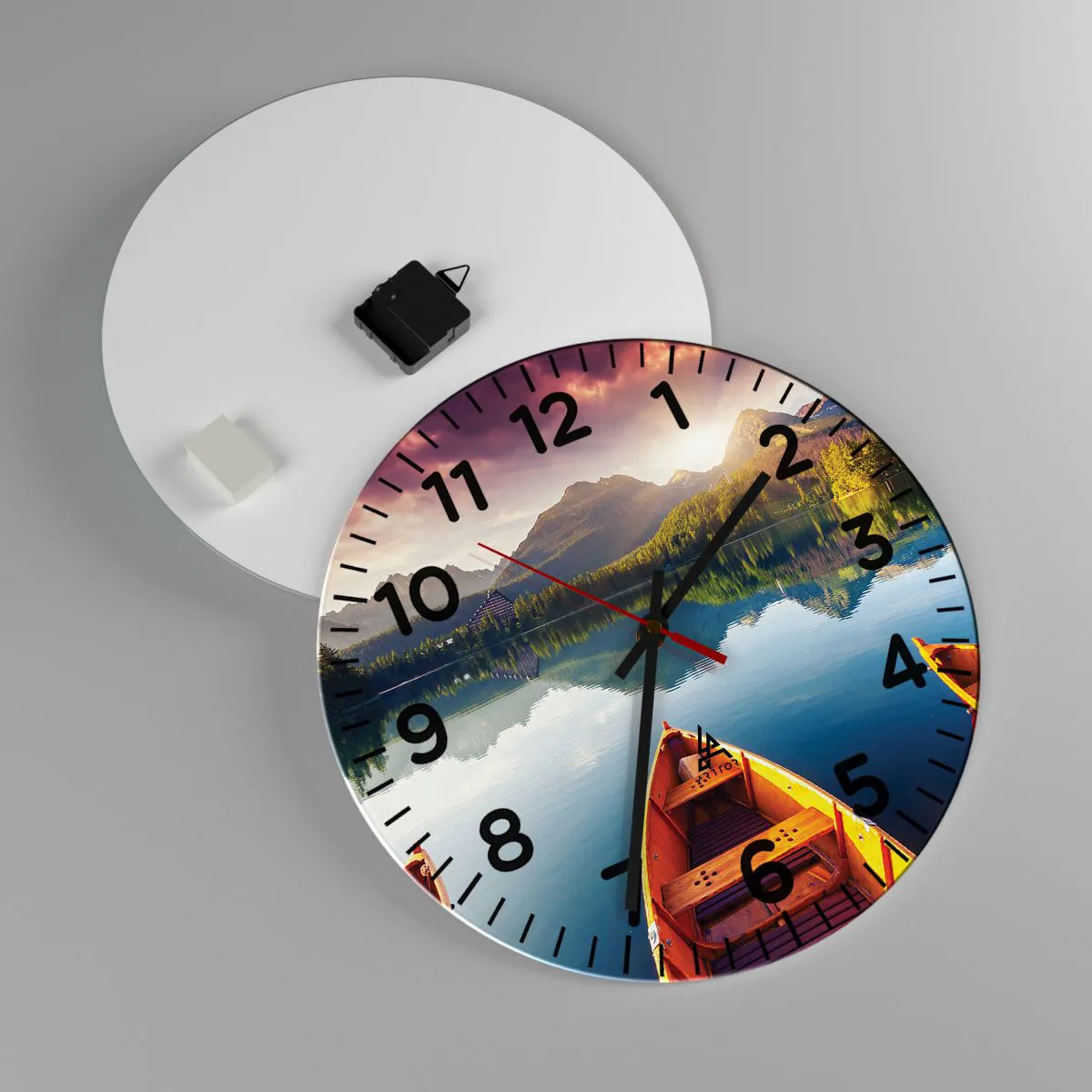 Die Uhr wird unter Verwendung moderner Drucktechnologien hergestellt, die die Erhaltung natürlicher Farben und eine hohe Farbsättigung garantieren. Die Herstellung von Uhren auf Glas erfolgt in mehreren Stufen. Hochwertiger Ausdruck und zwei Schutzschichten werden thermisch mit dem Glas verbunden. Dazu nutzen wir die innovative Technologie von Glaslaminieröfen in einer Vakuumumgebung.