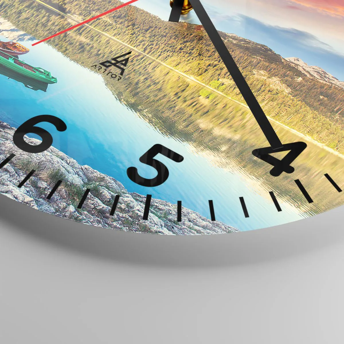 Die Uhr besteht aus robustem 4 mm dickem Glas. Glas bewahrt die natürlichen Farben des Drucks