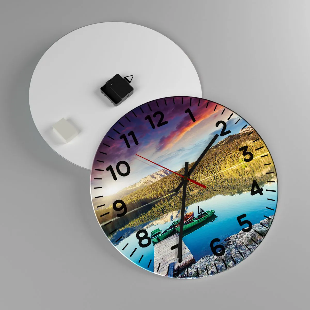 Die Uhr wird unter Verwendung moderner Drucktechnologien hergestellt, die die Erhaltung natürlicher Farben und eine hohe Farbsättigung garantieren. Die Herstellung von Uhren auf Glas erfolgt in mehreren Stufen. Hochwertiger Ausdruck und zwei Schutzschichten werden thermisch mit dem Glas verbunden. Dazu nutzen wir die innovative Technologie von Glaslaminieröfen in einer Vakuumumgebung.