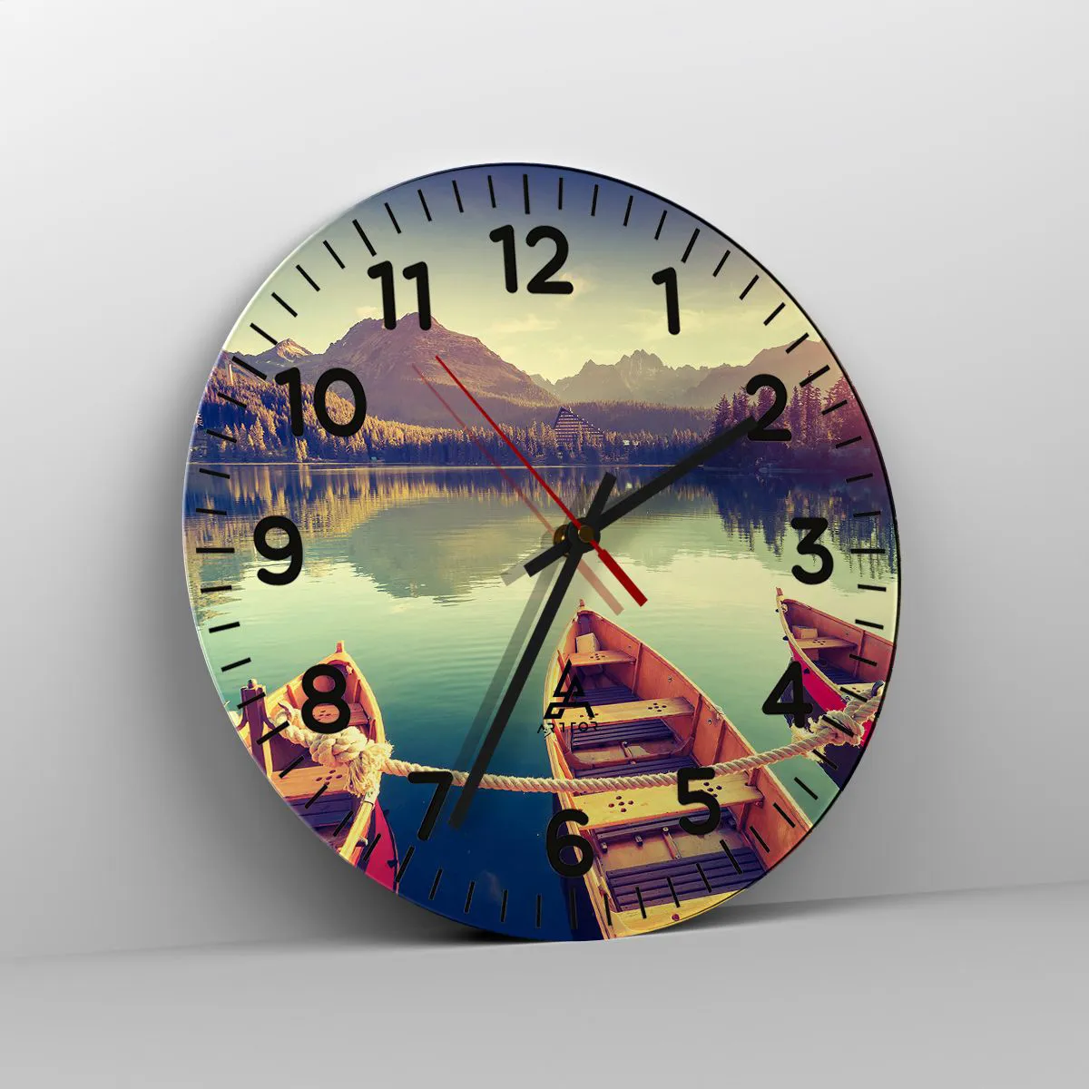 Die Uhr wird unter Verwendung moderner Drucktechnologien hergestellt, die die Erhaltung natürlicher Farben und eine hohe Farbsättigung garantieren. Die Herstellung von Uhren auf Glas erfolgt in mehreren Stufen. Hochwertiger Ausdruck und zwei Schutzschichten werden thermisch mit dem Glas verbunden. Dazu nutzen wir die innovative Technologie von Glaslaminieröfen in einer Vakuumumgebung.
