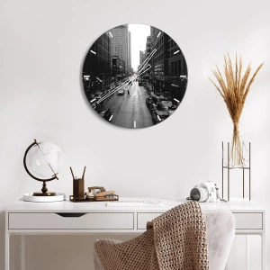 Die Uhr besteht aus 4 mm dickem Sicherheitsglas Glas. Die Herstellungstechnologie der Uhr entspricht der Sicherheitsklasse 2B2 gemäß der Norm PN-EN 12600: 2004, die Stoßfestigkeit garantiert. Die Uhr auf dem Glas ist bereit zu hängen - es hat einen Metallanhänger, einen Anhänger auf der Rückseite der Uhr und einen Schaumstoffabstand, der einen gleichmäßigen Abstand zwischen der Uhr und der Wand reguliert. Die Uhr hat einen geräuschlosen Schwimmmechanismus, der von einer 1,5-V-Batterie betrieben wird - AA-Batterie inbegriffen).