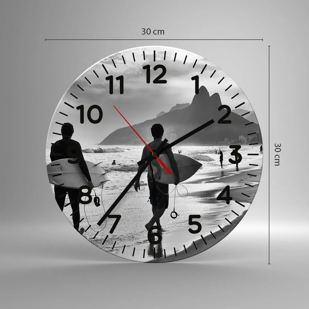 Die Uhr besteht aus robustem 4 mm dickem Glas. Glas bewahrt die natürlichen Farben des Drucks