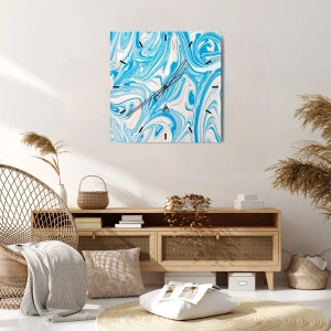 - Eine Wanduhr mit einem abstrakten türkis-weißen Poolmotiv. Ihr einzigartiges Design bringt Harmonie und Eleganz in jedes Interieur.