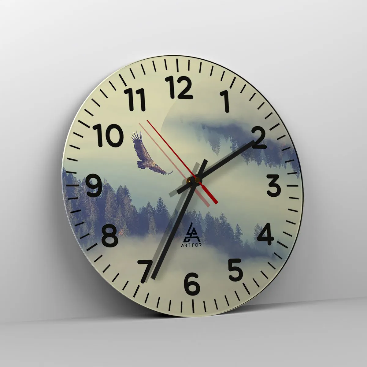 Die Uhr besteht aus robustem 4 mm dickem Glas. Glas bewahrt die natürlichen Farben des Drucks