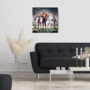 Wanduhr - Glasuhr - Eine dynamische Szene von Athleten verschiedener Disziplinen im Stadion unter dem Scheinwerferlicht - 30x30cm - Feldgladiatoren - Moderne Wanddekoration für Wohnzimmer und Schlafzimmer ARTTOR