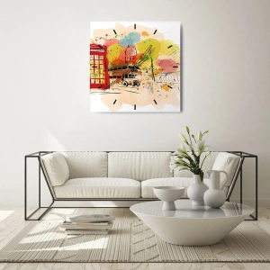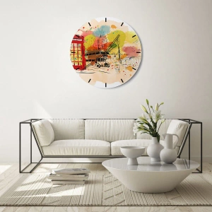 Wanduhr - Glasuhr - London-Thema mit rotem Bus und Stand - 30x30cm - Die Stadt der Vielfalt - Moderne Wanddekoration für Wohnzimmer und Schlafzimmer ARTTOR
