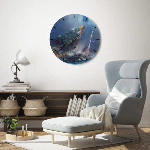 Die Uhr besteht aus 4 mm dickem Sicherheitsglas Glas. Die Herstellungstechnologie der Uhr entspricht der Sicherheitsklasse 2B2 gemäß der Norm PN-EN 12600: 2004, die Stoßfestigkeit garantiert. Die Uhr auf dem Glas ist bereit zu hängen - es hat einen Metallanhänger, einen Anhänger auf der Rückseite der Uhr und einen Schaumstoffabstand, der einen gleichmäßigen Abstand zwischen der Uhr und der Wand reguliert. Die Uhr hat einen geräuschlosen Schwimmmechanismus, der von einer 1,5-V-Batterie betrieben wird - AA-Batterie inbegriffen).