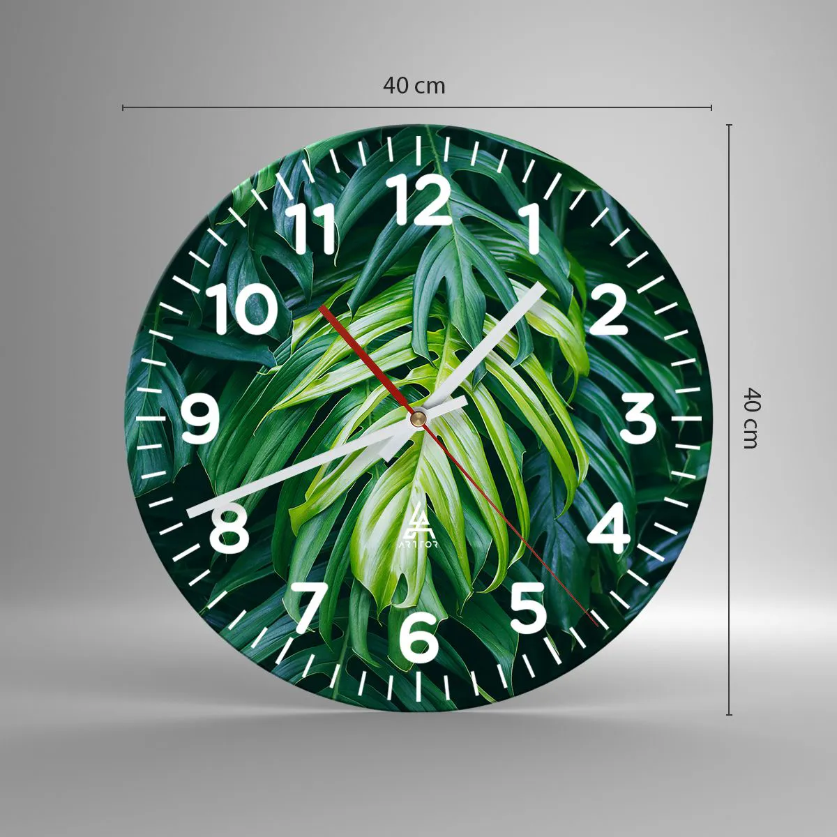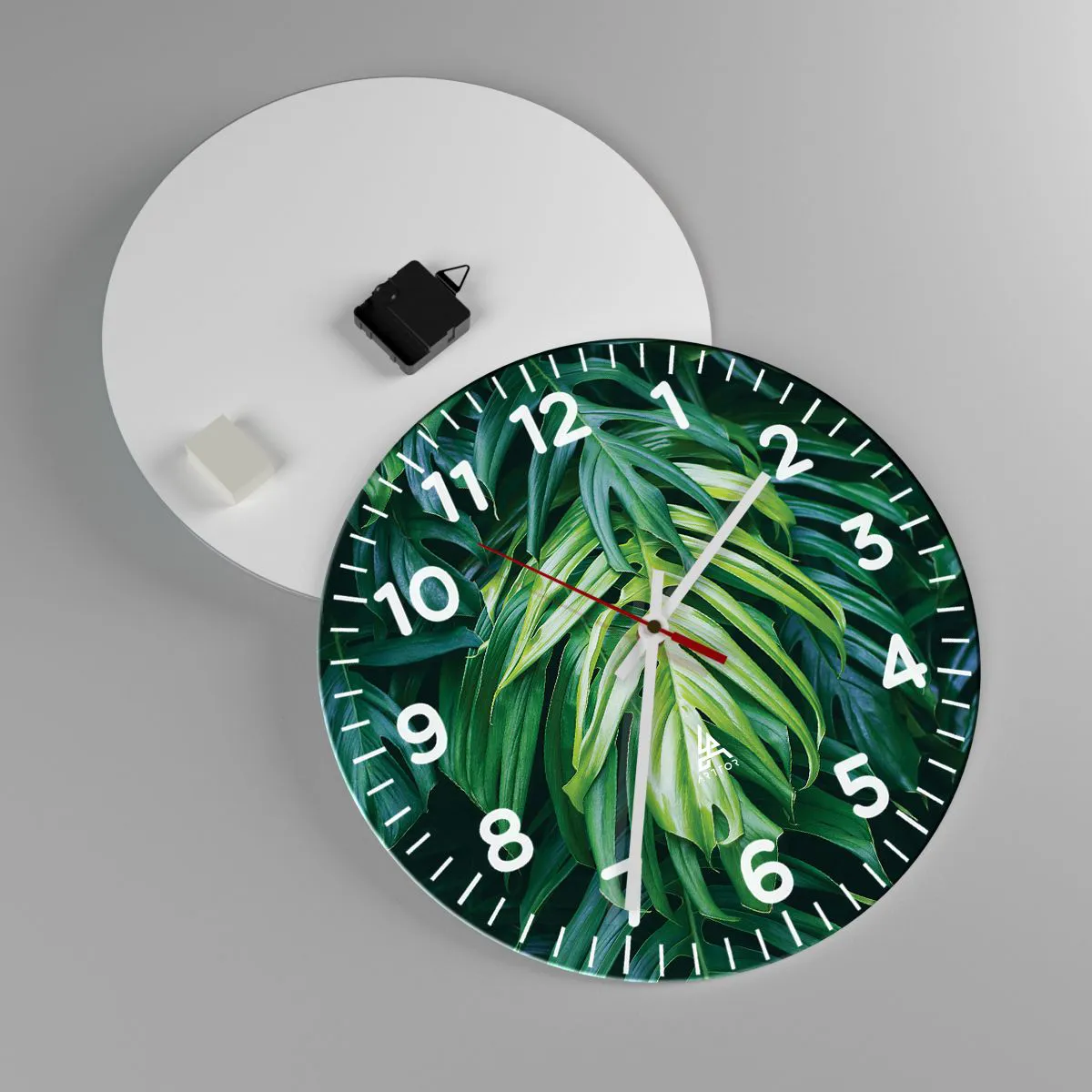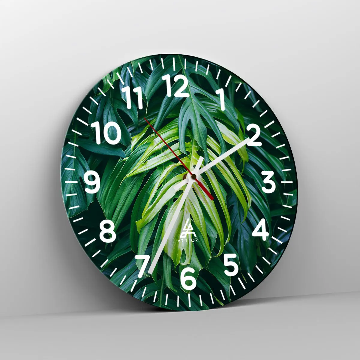 Die Uhr besteht aus robustem 4 mm dickem Glas. Glas bewahrt die natürlichen Farben des Drucks