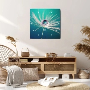 Die Uhr besteht aus 4 mm dickem Sicherheitsglas Glas. Die Herstellungstechnologie der Uhr entspricht der Sicherheitsklasse 2B2 gemäß der Norm PN-EN 12600: 2004, die Stoßfestigkeit garantiert. Die Uhr auf dem Glas ist bereit zu hängen - es hat einen Metallanhänger, einen Anhänger auf der Rückseite der Uhr und einen Schaumstoffabstand, der einen gleichmäßigen Abstand zwischen der Uhr und der Wand reguliert. Die Uhr hat einen geräuschlosen Schwimmmechanismus, der von einer 1,5-V-Batterie betrieben wird - AA-Batterie inbegriffen).