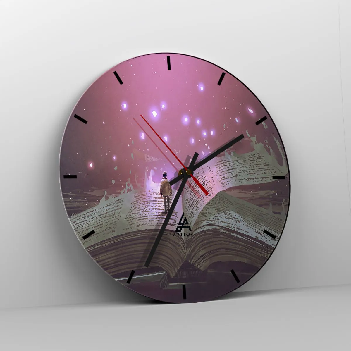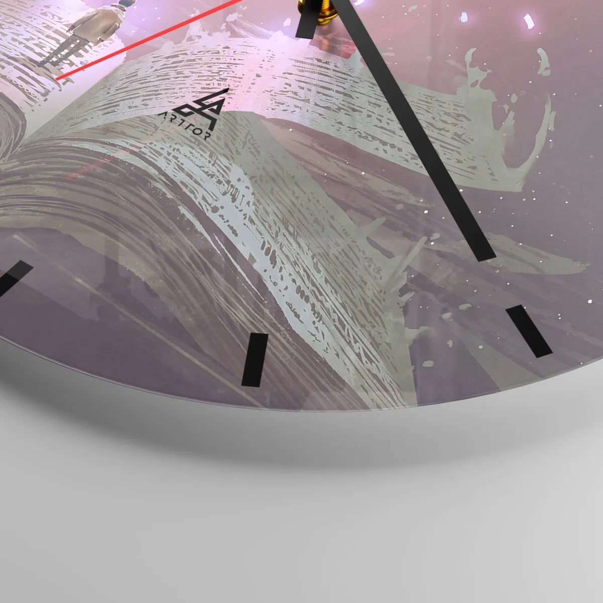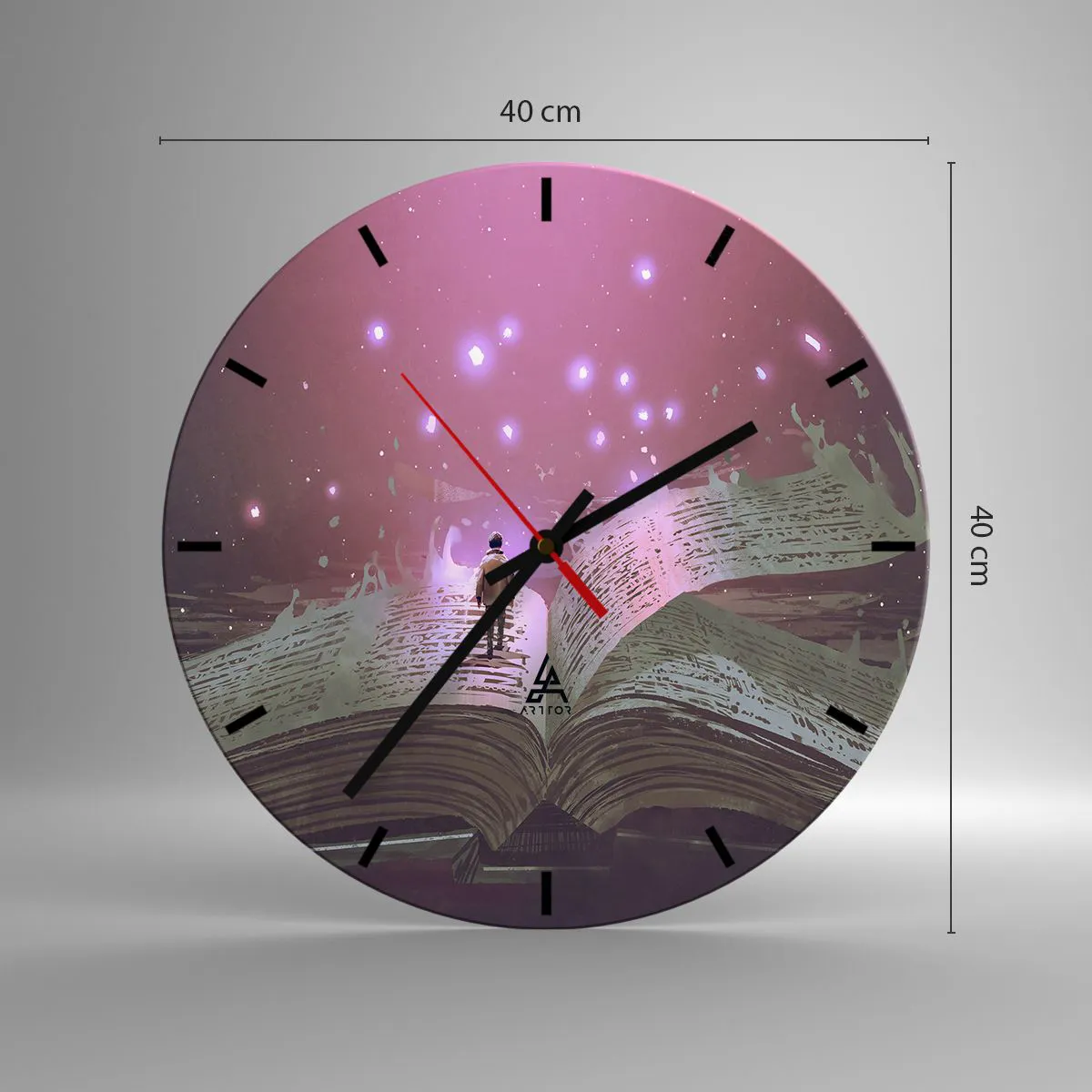 Wanduhr - Glasuhr - Einladung in eine andere Welt - lesen Sie! - 40x40 cm