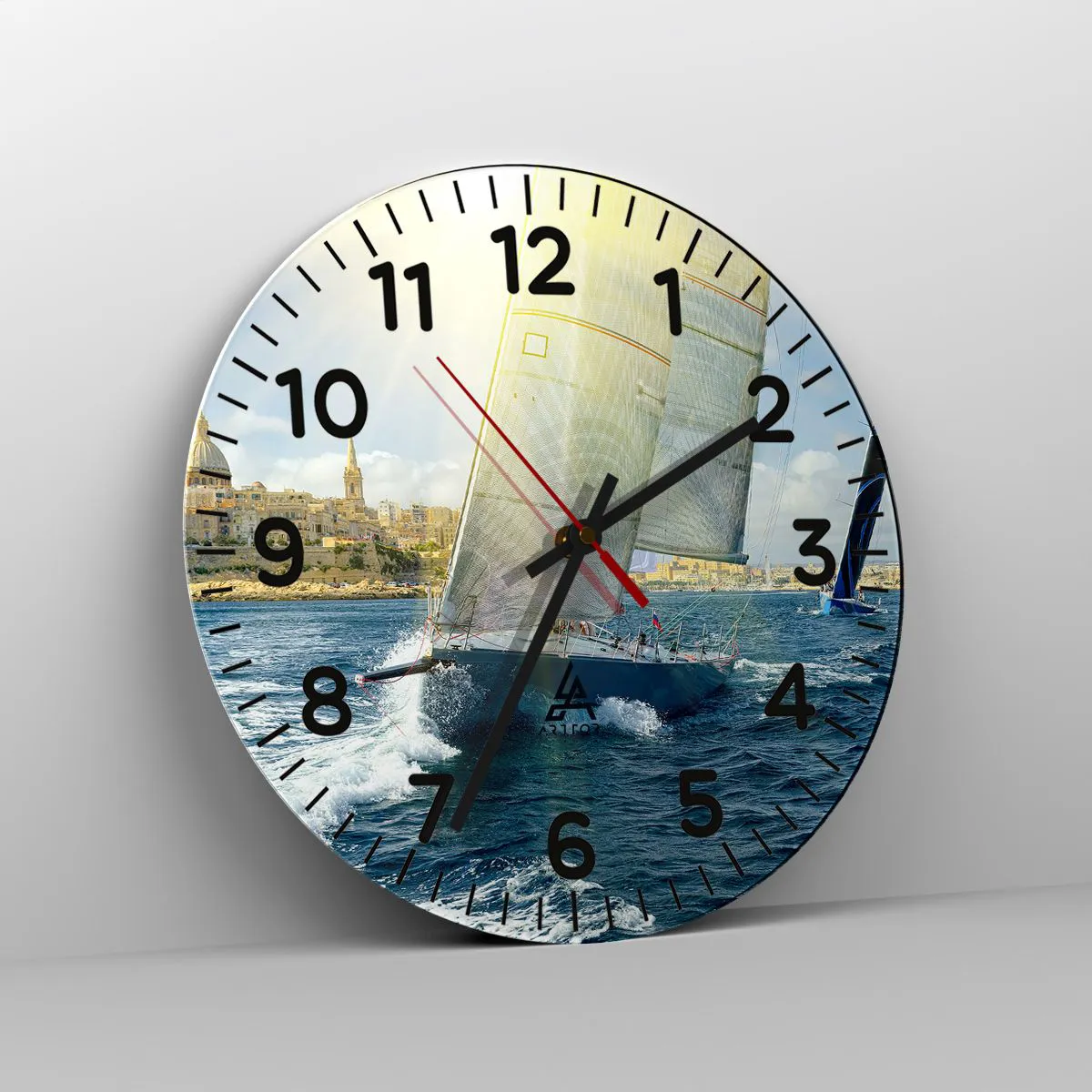 Die Uhr besteht aus robustem 4 mm dickem Glas. Glas bewahrt die natürlichen Farben des Drucks