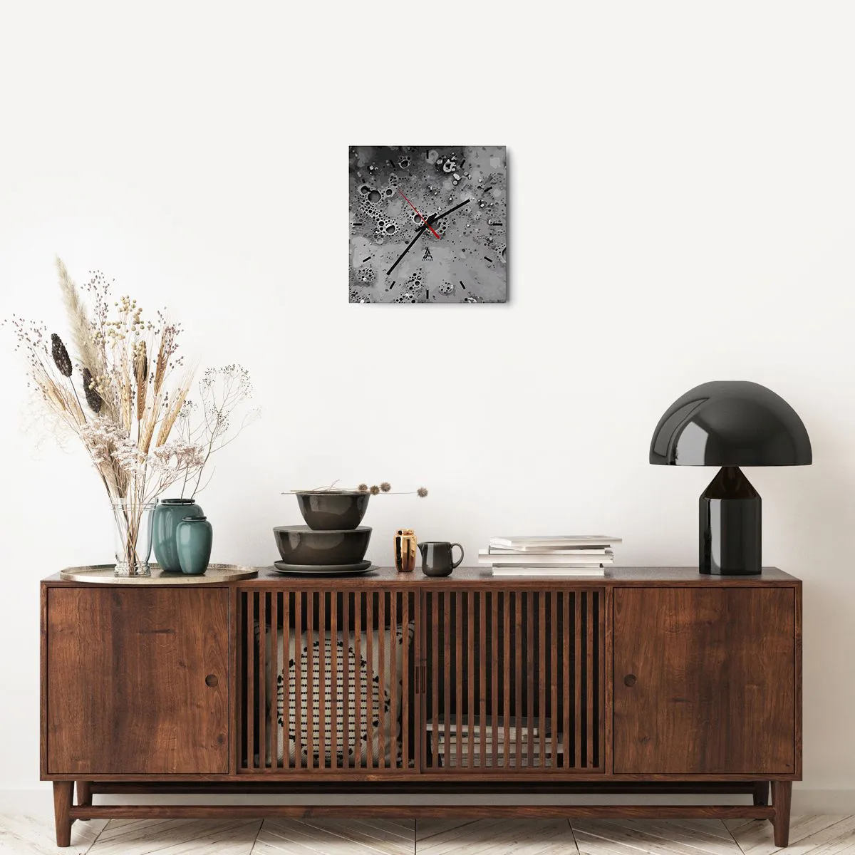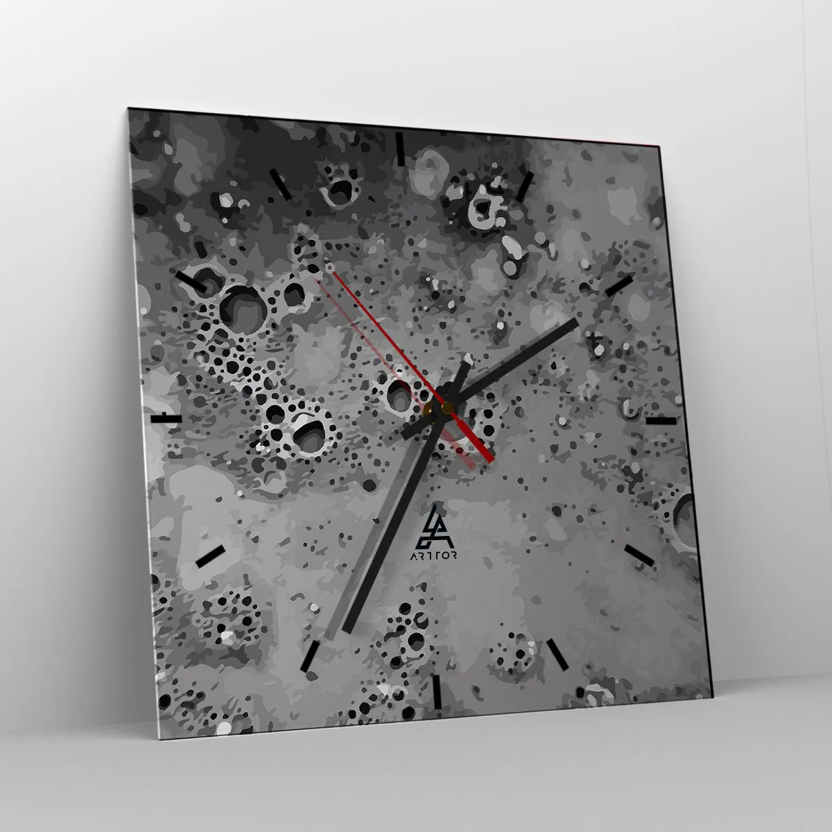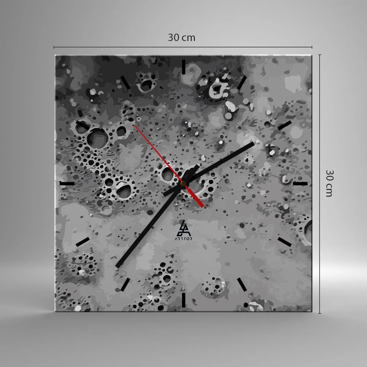 Wanduhr - Glasuhr - Abstraktes schwarz-weißes Blasenmuster - 30x30cm - Wie eine Mondlandschaft - Moderne Wanddekoration für Wohnzimmer und Schlafzimmer ARTTOR