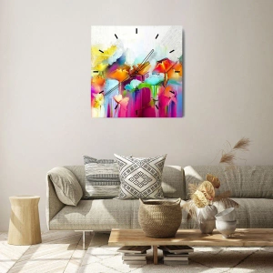 Wanduhr - Glasuhr - Bunte abstrakte Blumen in intensiven Farben - 30x30cm - Der Regenbogen ist aufgeblüht - Moderne Wanddekoration für Wohnzimmer, Küche und Schlafzimmer ARTTOR