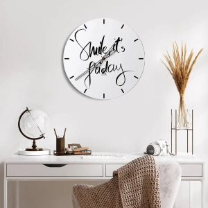 Die Uhr besteht aus 4 mm dickem Sicherheitsglas Glas. Die Herstellungstechnologie der Uhr entspricht der Sicherheitsklasse 2B2 gemäß der Norm PN-EN 12600: 2004, die Stoßfestigkeit garantiert. Die Uhr auf dem Glas ist bereit zu hängen - es hat einen Metallanhänger, einen Anhänger auf der Rückseite der Uhr und einen Schaumstoffabstand, der einen gleichmäßigen Abstand zwischen der Uhr und der Wand reguliert. Die Uhr hat einen geräuschlosen Schwimmmechanismus, der von einer 1,5-V-Batterie betrieben wird - AA-Batterie inbegriffen).