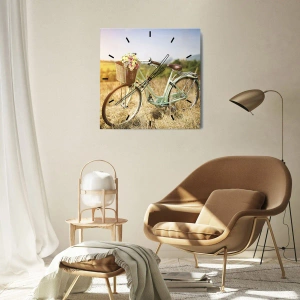 Die Uhr besteht aus 4 mm dickem Sicherheitsglas Glas. Die Herstellungstechnologie der Uhr entspricht der Sicherheitsklasse 2B2 gemäß der Norm PN-EN 12600: 2004, die Stoßfestigkeit garantiert. Die Uhr auf dem Glas ist bereit zu hängen - es hat einen Metallanhänger, einen Anhänger auf der Rückseite der Uhr und einen Schaumstoffabstand, der einen gleichmäßigen Abstand zwischen der Uhr und der Wand reguliert. Die Uhr hat einen geräuschlosen Schwimmmechanismus, der von einer 1,5-V-Batterie betrieben wird - AA-Batterie inbegriffen).