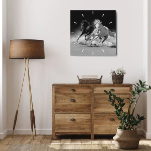 Wanduhr - Glasuhr - Galopp der Freiheit - 40x40 cm