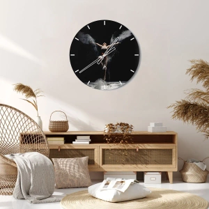 Die Uhr besteht aus 4 mm dickem Sicherheitsglas Glas. Die Herstellungstechnologie der Uhr entspricht der Sicherheitsklasse 2B2 gemäß der Norm PN-EN 12600: 2004, die Stoßfestigkeit garantiert. Die Uhr auf dem Glas ist bereit zu hängen - es hat einen Metallanhänger, einen Anhänger auf der Rückseite der Uhr und einen Schaumstoffabstand, der einen gleichmäßigen Abstand zwischen der Uhr und der Wand reguliert. Die Uhr hat einen geräuschlosen Schwimmmechanismus, der von einer 1,5-V-Batterie betrieben wird - AA-Batterie inbegriffen).
