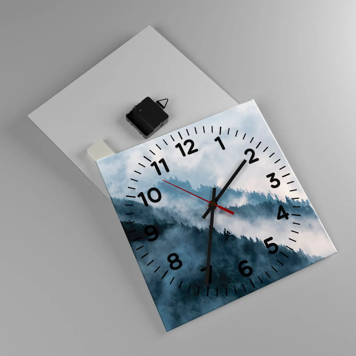 Die Uhr besteht aus 4 mm dickem Sicherheitsglas Glas. Die Herstellungstechnologie der Uhr entspricht der Sicherheitsklasse 2B2 gemäß der Norm PN-EN 12600: 2004, die Stoßfestigkeit garantiert. Die Uhr auf dem Glas ist bereit zu hängen - es hat einen Metallanhänger, einen Anhänger auf der Rückseite der Uhr und einen Schaumstoffabstand, der einen gleichmäßigen Abstand zwischen der Uhr und der Wand reguliert. Die Uhr hat einen geräuschlosen Schwimmmechanismus, der von einer 1,5-V-Batterie betrieben wird - AA-Batterie inbegriffen).