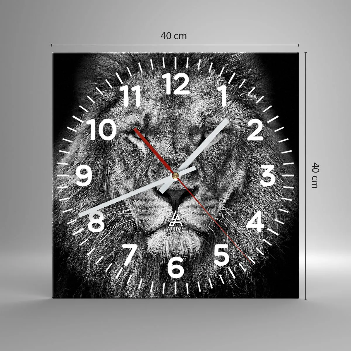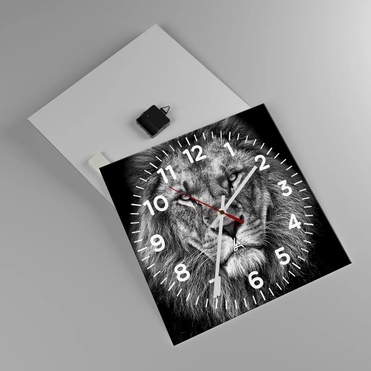 Die Uhr besteht aus 4 mm dickem Sicherheitsglas Glas. Die Herstellungstechnologie der Uhr entspricht der Sicherheitsklasse 2B2 gemäß der Norm PN-EN 12600: 2004, die Stoßfestigkeit garantiert. Die Uhr auf dem Glas ist bereit zu hängen - es hat einen Metallanhänger, einen Anhänger auf der Rückseite der Uhr und einen Schaumstoffabstand, der einen gleichmäßigen Abstand zwischen der Uhr und der Wand reguliert. Die Uhr hat einen geräuschlosen Schwimmmechanismus, der von einer 1,5-V-Batterie betrieben wird - AA-Batterie inbegriffen).