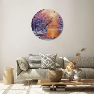 Die Uhr besteht aus 4 mm dickem Sicherheitsglas Glas. Die Herstellungstechnologie der Uhr entspricht der Sicherheitsklasse 2B2 gemäß der Norm PN-EN 12600: 2004, die Stoßfestigkeit garantiert. Die Uhr auf dem Glas ist bereit zu hängen - es hat einen Metallanhänger, einen Anhänger auf der Rückseite der Uhr und einen Schaumstoffabstand, der einen gleichmäßigen Abstand zwischen der Uhr und der Wand reguliert. Die Uhr hat einen geräuschlosen Schwimmmechanismus, der von einer 1,5-V-Batterie betrieben wird - AA-Batterie inbegriffen).