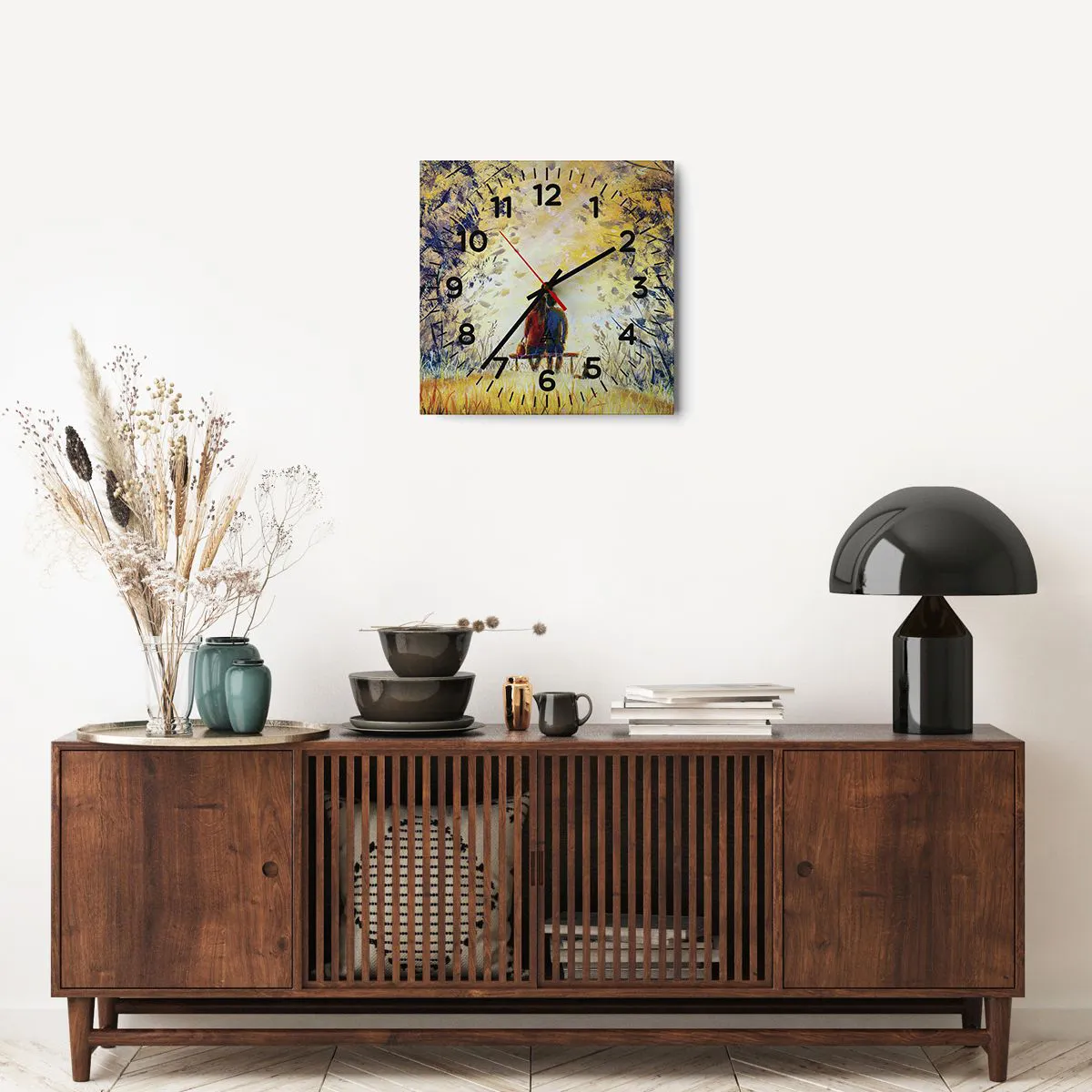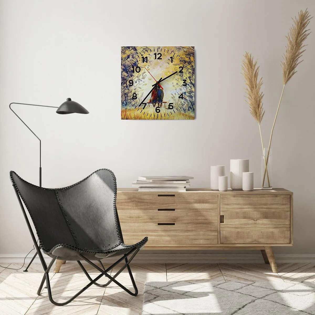 Die Uhr besteht aus robustem 4 mm dickem Glas. Glas bewahrt die natürlichen Farben des Drucks