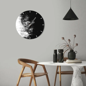 Die Uhr besteht aus 4 mm dickem Sicherheitsglas Glas. Die Herstellungstechnologie der Uhr entspricht der Sicherheitsklasse 2B2 gemäß der Norm PN-EN 12600: 2004, die Stoßfestigkeit garantiert. Die Uhr auf dem Glas ist bereit zu hängen - es hat einen Metallanhänger, einen Anhänger auf der Rückseite der Uhr und einen Schaumstoffabstand, der einen gleichmäßigen Abstand zwischen der Uhr und der Wand reguliert. Die Uhr hat einen geräuschlosen Schwimmmechanismus, der von einer 1,5-V-Batterie betrieben wird - AA-Batterie inbegriffen).