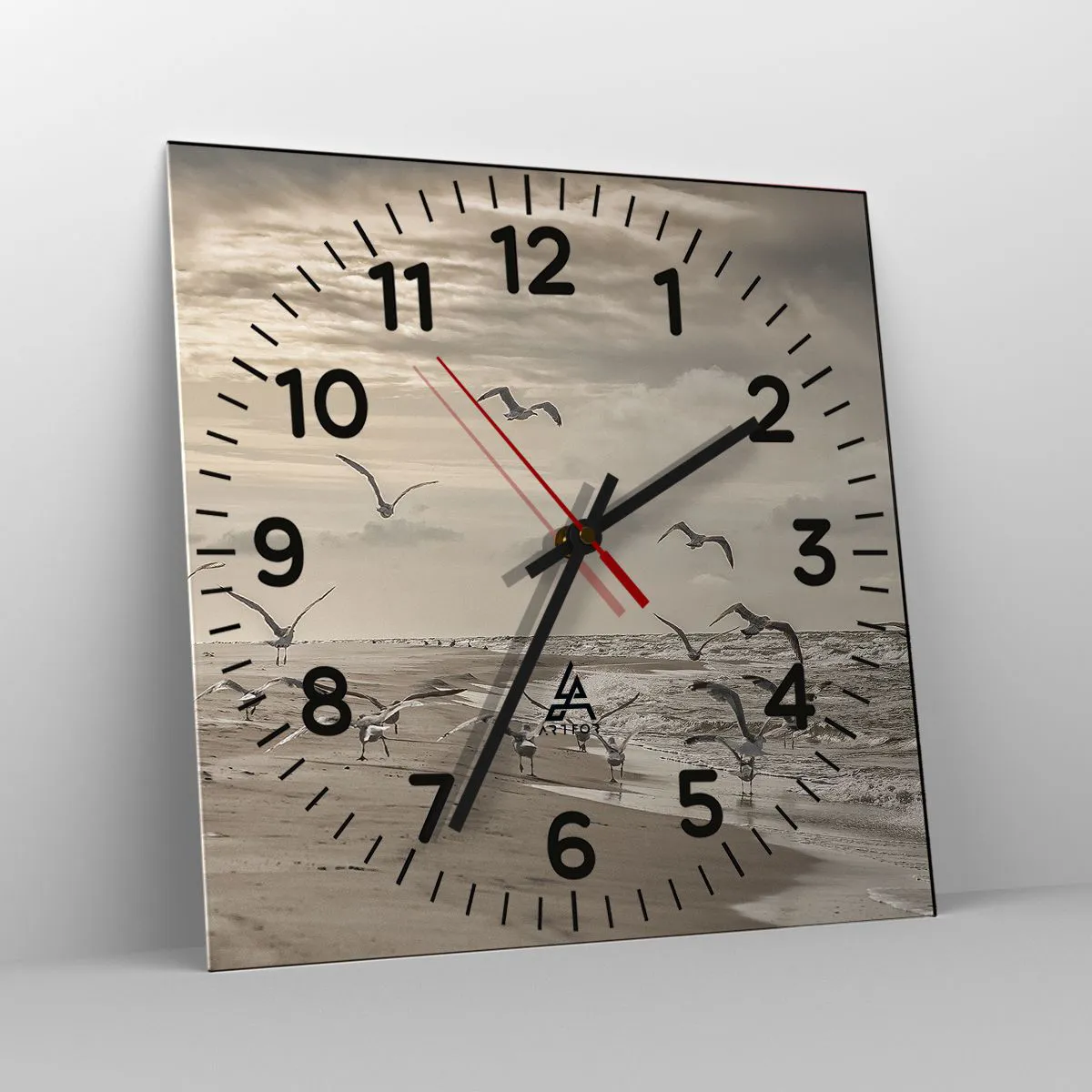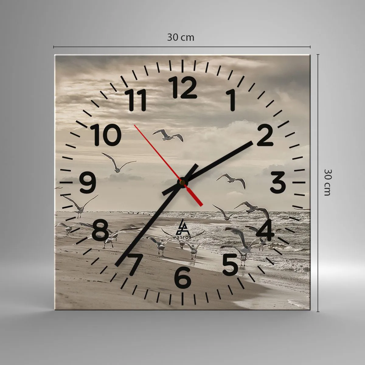 Wanduhr - Glasuhr - Meeresrauschen, Vogelgesang - 30x30 cm
