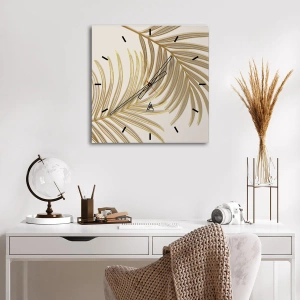 Wanduhr - Glasuhr - Goldene Palme! - 40x40 cm