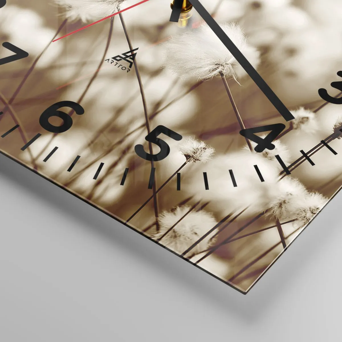 Die Uhr besteht aus robustem 4 mm dickem Glas. Glas bewahrt die natürlichen Farben des Drucks