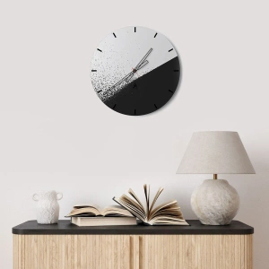 Die Uhr besteht aus 4 mm dickem Sicherheitsglas Glas. Die Herstellungstechnologie der Uhr entspricht der Sicherheitsklasse 2B2 gemäß der Norm PN-EN 12600: 2004, die Stoßfestigkeit garantiert. Die Uhr auf dem Glas ist bereit zu hängen - es hat einen Metallanhänger, einen Anhänger auf der Rückseite der Uhr und einen Schaumstoffabstand, der einen gleichmäßigen Abstand zwischen der Uhr und der Wand reguliert. Die Uhr hat einen geräuschlosen Schwimmmechanismus, der von einer 1,5-V-Batterie betrieben wird - AA-Batterie inbegriffen).