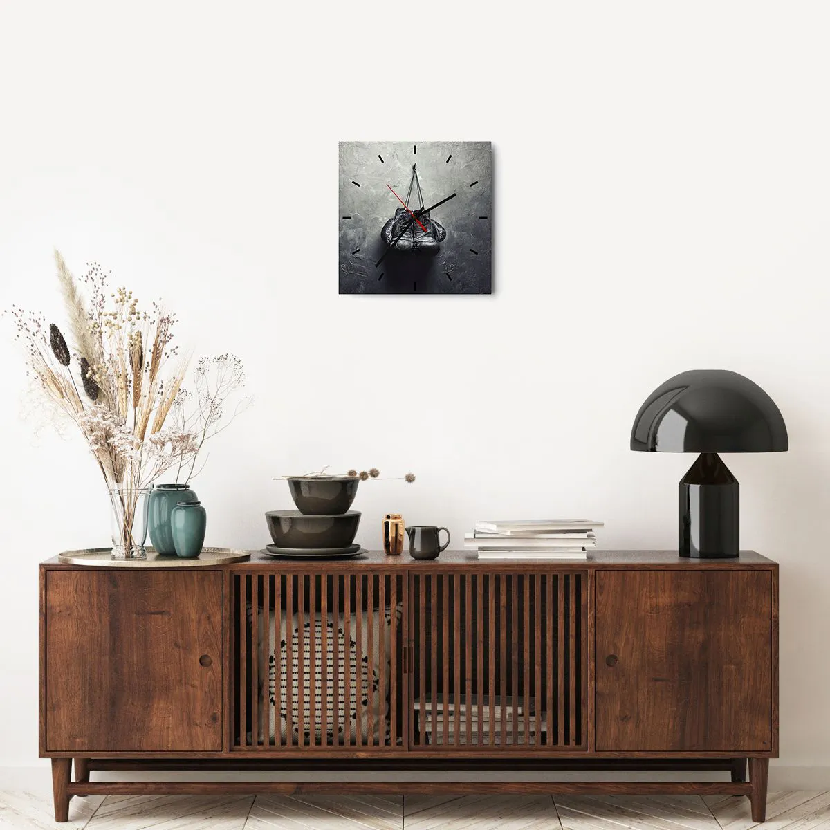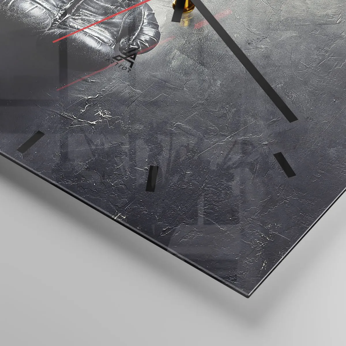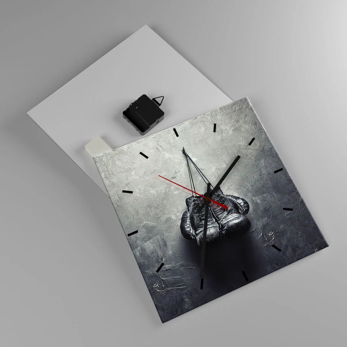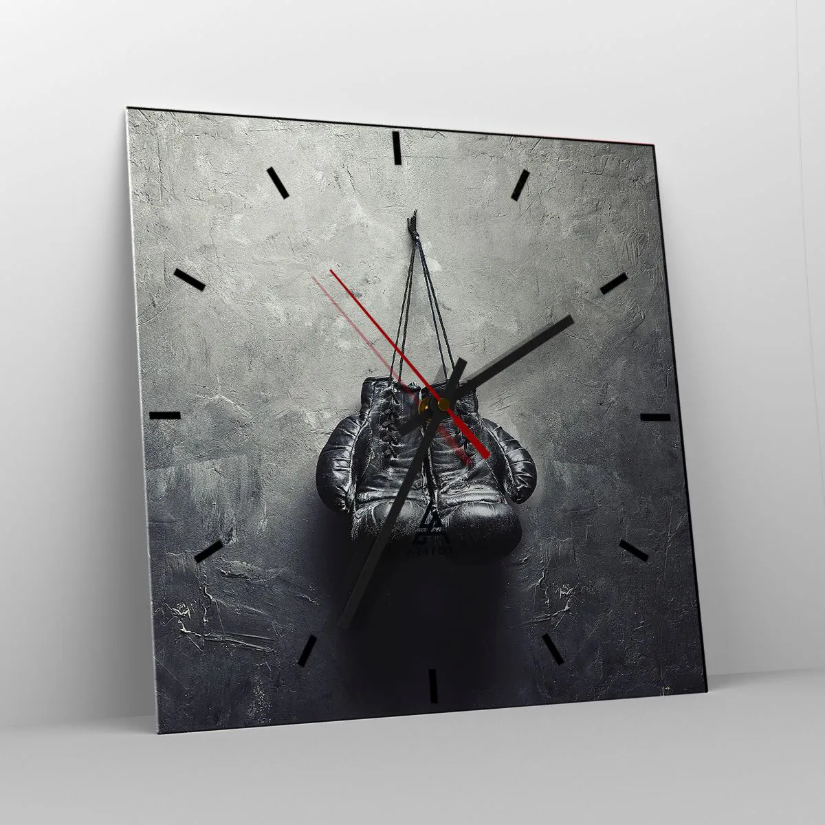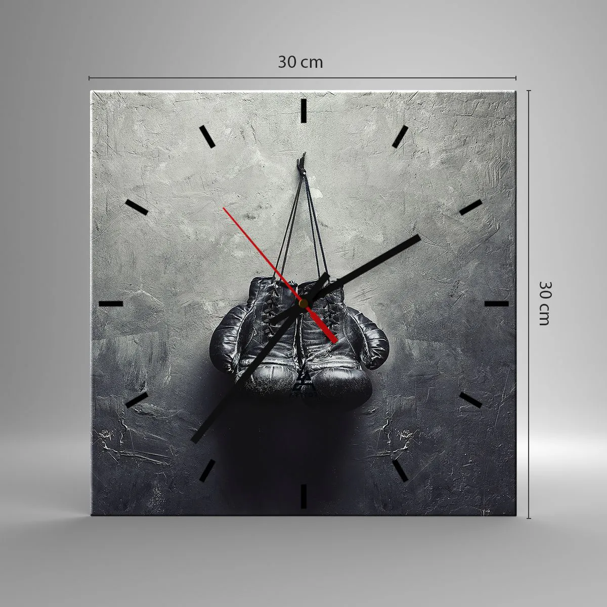 Wanduhr - Glasuhr - Alte Boxhandschuhe an der Wand - 30x30cm - Zeit des Kampfes und Zeit des Friedens - Moderne Wanddekoration für Wohnzimmer und Schlafzimmer ARTTOR